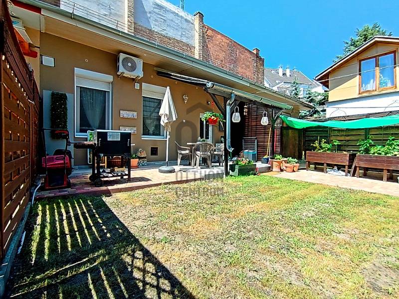 EGY REGGELI KÁVÉZÁS / EGY KELLEMES EBÉD / EGY KIS DÉLUTÁNI SZIESZTA / EGY MEGHITT, GYERTYAFÉNYES VACSORA / EGY SÜTÖGETŐS GRILL PARTY A CSALÁDDAL, BARÁTOKKAL A TERASZON…??? VAGY ESETLEG EGY KIS PIHENÉS / NAPOZÁS / MEDENCÉZÉS / KERTÉSZKEDÉS A TELJESEN LEVÁLASZTOTT, KIZÁRÓLAGOS HASZNÁLATÚ SAJÁT UDVARON ??? ÉS MIND EZ EGY CSENDES, NYUGODT KERTVÁROSI KÖRNYEZETBEN LÉVŐ, KÍVÜL-BELÜL ESZTÉTIKAILAG ÉS MŰSZAKILAG IS TELJES KÖRŰEN FELÚJÍTOTT / ÚJJÁVARÁZSOLT - A VÉTELÁRBAN BENNE LÉVŐ (!!!) VINTAGE STÍLUSBAN GYÖNYÖRŰEN ÉS LUXUS SZÍNVONALON TELJES KÖRŰEN LAKBERENDEZETT ÉS BEGÉPESÍTETT - BELSŐ KÉTSZINTES (DUPLEX) TÁRSASHÁZI LAKÁSSAL A HÁTTÉRBEN... HIGGYE EL, HOGY EZ EGYÁLTALÁN NEM LEHETETLEN !!! :) HA MINDIG IS ERRE AZ ÉLETÉRZÉSRE VÁGYOTT, AKKOR NE IS KERESGÉLJEN / NÉZELŐDJÖN TOVÁBB, MERT SZERINTEM BIZTOS, HOGY MEGTALÁLTA !!! :) IV., Újpest kertvárosi részén - a városközponttól is mindösszesen csak 2-3 perc sétatávolságra - a Lőrinc utcában kínálok eladásra egy kis létszámú, kulturált (csendes, barátságos, segítőkész) lakóközösséggel büszkélkedő, tégla építésű társasházban lévő, a mai kor minden igényét és kényelmét maximálisan szem előtt tartva kialakított, luxus színvonalon lakberendezett (bútorozott és gépesített), 10 cm vastagságú külső (dryvit) hőszigeteléssel és egy nagyon energiatakarékos hűtő-fűtő klímaberendezéssel is tovább komfortosított / rezsicsökkentett, nagyon minőségi anyagokkal és nagyon extra kivitelezéssel, esztétikailag és műszakilag is teljes körűen, 2021-ben felújított és azóta is újszerű / kifogástalan állapotban lévő, keleti tájolású, közvetlen napsütötte (rendkívül világos), az előtte lévő 14 m2 nagyságú, részben - fényáteresztő, UV szűrős polikarbonát tetővel – fedett, fagyálló járólappal burkolt teraszára és a további kb. 40-45 m2 nagyságú, saját, kizárólagos használatú, teljes mértékben elszeparált zöld kertjére / térkövezett járdás udvarára panorámás - a földhivatali bejegyzés / tulajdoni lap szerint 34 m2 alapterülettel - de az ingatlan belső kétszintessé történő átépítésének / átalakításának, a tetőtér teljes körű beépítéséből kifolyólag kapott plusz 26 m2-nyi lakóterületnek köszönhetően, a valóságban és használhatóságában is már 60 m2-es (!!!) alapterülettel büszkélkedő, kiváló helyiség elosztással rendelkező, az alsó (34 m2-es) lakószinten, a lakás központi szerepét betöltő - teljesen bútorozott és begépesített (munkalapba épített 4 zónás gázfőzőlap + külön beépített elektromos sütő, mikrohullámú sütő, kürtős pára-, és szagelszívó berendezés, beépített mosogatógép és automata mosógép, fagyasztós hűtőszekrény) amerikai konyhás - 4-6 személy számára egy kényelmes étkezőt és a felső lakószintre felvezető lépcsőházat is magába foglaló - nappalinak, a bejáratnál praktikusan kialakított előszobának és nem utolsósorban egy nagyon esztétikus / megfelelő méretű - a WC-t is magában foglaló - épített zuhanyzós fürdőszobának, valamint a felső (26 m2-es) „tetőtéri” lakószinten pedig egy légtérben kialakított, hihetetlenül tágas / kényelmes és hatalmas hálószobának / dolgozószobának / olvasósaroknak / pihenőrésznek is otthont adó öröklakást, amelyhez még egy önálló, zárható, porszáraz, kb. 5-6 m2 alapterületű, téglaépítésű udvari tároló is hozzá tartozik !!! :)Az ingatlant mind műszaki, mind esztétikai, valamint belső építészeti szempontból is a lehető legmodernebb és legmagasabb minőségű anyagokat és megoldásokat tartalmazza (csak a teljesség igénye nélkül...)- a bukó-nyíló, hőszigeteléssel és több légkamrás üvegezéssel ellátott, nagy méretű ablakai műanyag redőnnyel felszereltek,- a biztonsági zárral és üvegbetétekkel gazdagon ellátott (nagyon fényáteresztő), esztétikus és modern, időjárás álló, műanyag külső burkolattal védett, de belül acélbetétes megoldással bíró bejárati ajtót építettek be,- az egész ingatlanban lévő fűtést 1 darab - a nappali egyik ablaka alá szerelt - parapet kivezetéses, FÉG Zeusz típusú “látványkandallós kivitelezésű\" modern, nagy hatásfokú gázkonvektor biztosítja - amely maximális hatékonysággal, minimális fogyasztás mellett biztosítja a kellemes hőérzetet, így téve szinte láthatatlanná a téli napok fűtésköltségét :)- a forró nyári napok ellensúlyozására, a tetőtéri lakószint plusz hűtésére és egyben fűtésére is szolgáló, valamint a lakás komfortfokozatának a tovább növelésének érdekében is, a tetőtéri lakószintre felvezető „lépcsőházi részen” egy nagyon energiatakarékos klímaberendezés került felszerelésre,- a lakás különleges és egyedi melegségét / otthonosságát meghatározó belső-, és a hangulatvilágításokat is a legmodernebb, főleg meleg színhőmérsékletű (sárga fényű) LED izzószálas (energiatakarékos), dízájn lámpatestekkel oldották meg,- a szoba és a tetőtéri lakószint padlóját magas minőségű és kopásállóságú laminált parkettával, a lakás többi helyiségének padlóját pedig, szintén nagy kopás állóságú és magas minőségű járólappal burkolták,- a gondosan kiválasztott fali burkolatoknak sikerült otthonossá tennie / tovább emelnie a lakás hangulatát,- a minőségi konyhabútort egy munkalapba épített 4 zónás gázfőzőlappal, egy külön beépített elektromos sütővel, egy kürtős (külső kivezetésű) pára-, és szagelszívó berendezéssel és egy a konyhai vízrendszerbe bekötött mosogatógéppel, valamint (a fürdőszobai helymegtakarítás érdekében pedig…) egy automata mosógéppel varázsoltak teljes értékűvé,- a kellemesen haszná