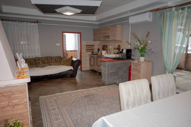 Kedves Érdeklődő!Eladásra kínálunk Oros csendes, élhető részén egy 88,82 nm-es családi házat, amelyhez egy ritkaságnak számító, 8.586 nm-es telek tartozik. Az ingatlan ideális választás mindazok számára, akik tágas életteret, nyugalmat és hosszú távú lehetőségeket keresnek – akár gazdálkodásra, akár befektetésre, akár többgenerációs gondolkodásban.A ház elrendezése kifejezetten élhető:két külön nyíló szoba mellett egy nappali–konyha–étkező egybenyitott tér biztosítja a családi élet központját. Emellett fürdőszoba, előszoba és kamra is helyet kapott. A nappaliból közvetlen kijárat nyílik a 22,67 nm-es, nagy fedett teraszra, amely tökéletes helyszíne lehet pihenésnek, baráti összejöveteleknek vagy akár egész évben használható kültéri élettérnek.A ház beton alapra épült, vegyes falazattal, onduline tetőfedéssel. A fűtés jelenleg gázkonvektoros, azonban radiátoros rendszer is kiépítésre került, így egy gázkazán felszerelésével könnyedén gázcirkó fűtésre alakítható. A nappaliban egy hangulatos kandalló is található, továbbá hűtő-fűtő klíma gondoskodik az egész éves komfortérzetről.Az ingatlan akár teljes berendezéssel együtt is megvásárolható, ami jelentősen megkönnyíti a gyors költözést vagy az azonnali hasznosítást.A telek igazi értéket képvisel:a 8.586 nm-es területen megtalálható– egy egyállásos garázs,– fészer,– fatároló,– valamint külön melléképület is.Fontos lehetőség, hogy az ingatlan kisebb telekrésszel is megvásárolható, ebben az esetben az ár értelemszerűen kedvezőbb, így többféle vevői igényhez is rugalmasan igazítható.A birtokbaadás szinte azonnali, így az ingatlan gyorsan hasznosítható, legyen szó költözésről, vidéki életkezdésről vagy befektetésről.Ez a ház nem csupán egy ingatlan, hanem lehetőség: térre, nyugalomra, fejlődésre és hosszú távú értékre.A hirdetésben szereplő információk a megbízótól kapott adatok alapján készültek, pontosságukért felelősséget nem vállalunk!Amennyiben vásárláshoz hitelre is szüksége van, független hitel tanácsadónk ingyenesen tud Önnek segítséget nyújtani a legjobb konstrukciók kiválasztásában és a folyamat lebonyolításában. Irodánk kereső ügyfeleinknek teljes körű szolgáltatást nyújt, szakszerű tanácsadással, energetikai tanúsítvány elkészítésével, hitelügyintézéssel és profi ügyvédi segítséggel. Abban az esetben ha az ingatlan felkeltette érdeklődését keressen bizalommal!