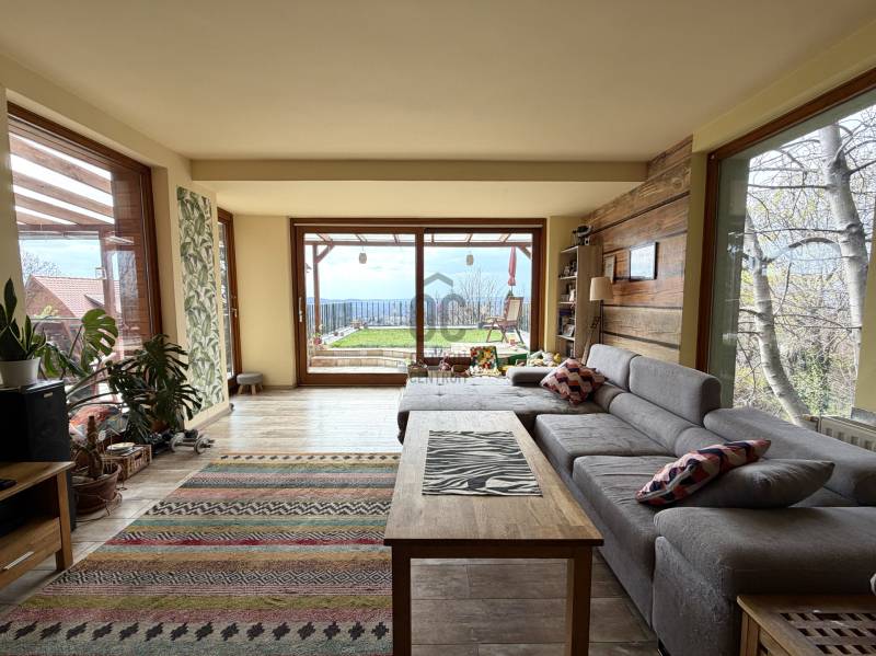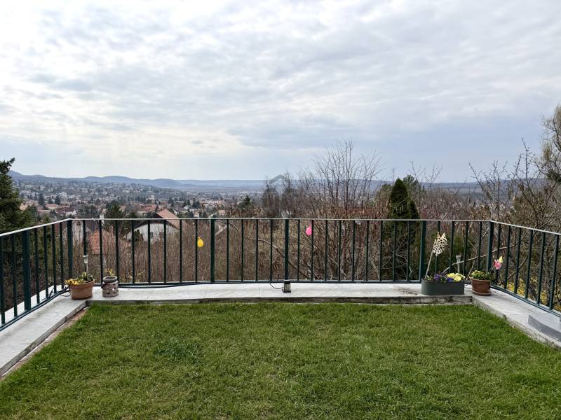 Ritka lehetőség a piacon: állandó panoráma, teljes nyugalom, mégis mindössze 15 percre Budapesttől!Ez a 150nm-es világos, tágas otthon Budakeszi legszebb részén helyezkedik el, ahol sem autóforgalom, sem szomszédzaj nem zavarja a mindennapokat.Otthon, ahol egész nap süt a nap.A nappali, a terasz és a hálószobák egész nap természetes fényben fürdenek.A 60 nm-es terasz egy része füvesített, automata öntözőrendszerrel felszerelt, igény esetén jakuzzi is telepíthető, így saját privát wellness-szigeted lehet.Ősztől tavaszig a teraszról és a nappaliból páratlan naplementékben gyönyörködhetsz.Környezet és közlekedés:A környék csendes, zöldövezeti, igazi kis sziget a város mellett.A buszmegálló 5 perc sétára található, a Budapest-bérlettel használható járatok 5 percenként közlekednek, így a főváros gyorsan és kényelmesen elérhető, dugóállás nélkül, mindkét irányban.Műszaki állapot:•A ház 2007-ben társasházzá nyilvánított, 2019-ben teljes felújításon és 12 cm-es szigetelésen esett át•Szintek teljesen elszeparáltak, saját bejárattal és külön helyrajzi számmal•A telek adottsága miatt a szomszédokkal gyakorlatilag nem lehet találkozni•Fa, dupla üvegű nyílászárók•Viessmann kondenzációs kazán•Alacsony rezsi: fűtés ~15.800 Ft/hó, áram ~5.700 Ft/hóKert és parkolás:•A lakáshoz kb. 200 nm saját kert tartozik•Emellett 702 nm közös, gondozott kert is rendelkezésre áll, gyümölcsfákkal, virágokkal, sütögető hellyel•Ingyenes utcai parkolás, saját beállón•Extra: 1 év ingyenes parkolóhely a pár perc sétára található teremgarázsban (a vételár része!)Infrastruktúra:•DM, Coop, pékség, éttermek, park és játszótér (10 perc séta)•Két irányban 5 perc alatt cukrászdák, kávézók•Kiváló óvodák, iskolák (állami és magán), erdei és parki játszóterek•Közeli védőnői, gyermekorvosi és felnőtt orvosi központ•Kedves, összetartó, segítőkész lakóközösségKinek ajánljuk?Tökéletes választás:✔ családoknak✔ külföldről hazatelepülőknek✔ befektetőknekakik exkluzív, panorámás, nyugodt otthont keresnek közel Budapesthez.Gyors 30 napos birtokbaadás! Rugalmasan megtekinthető, további információért és megtekintési időpontért hívjon!