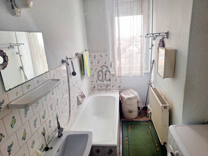 Eladó Tapolca Nyugati városrészében egy 2 szobás, 4. emeleti tégla lakás, rendezett tulajdoni viszonyokkal!Az ingatlanról:Alapterület: 55 m2Helyiségek: Előszoba, Konyha, Kamra, 2 Szoba, Fürdő + WC, ErkélyÉpítési mód: TéglaFűtés: Távfűtés, egyedi mérés nélkülKözművek: Víz, Villany, Csatorna bevezetve, Gáz nincsNyílászárók: részben műanyag, részben faÁllapot: Átlagos állapotúEmelet: 4. emelet (zárószint)Közös költség: 12500 FtTovábbi információ:Az ingatlan rendezett, zárt lépcsőházas társasházban van, csendes környezetben.Tartozik hozzá egy közös tároló, melyet 3 lakás tulajdonosai használnak közösen.Az ingatlan tehermentes.Az épület külső állapota jó, 2 évvel ezelőtt a tető megújult, víz szigetelés megtörtént.Amennyiben felkeltettem érdeklődését, keressen bizalommal!