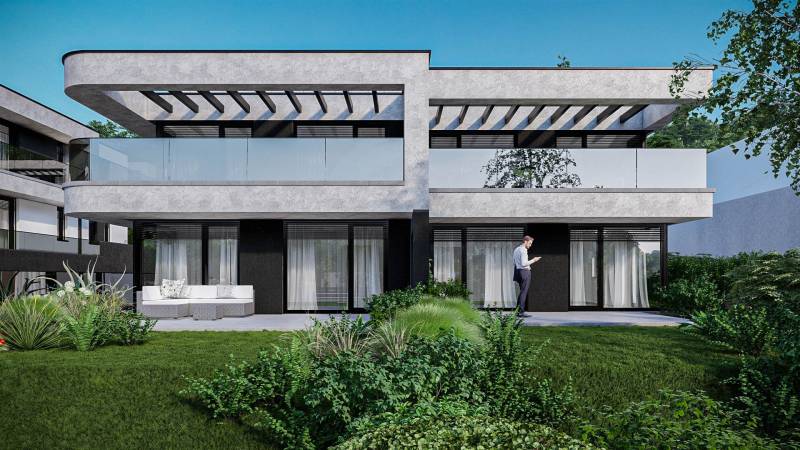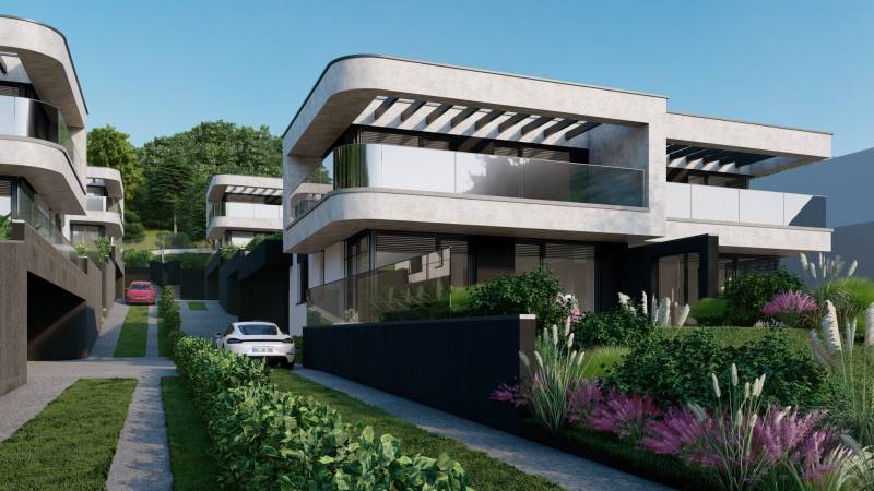 Válassza egy LUXUS otthon kényelmét, lenyűgöző PANORÁMÁVAL.Az ingatlan magában foglalja a csodás kilátást, a magas minőséget és a kedvelt lokáció nyújtotta nagyvárosi eleganciát.A hőszivattyúval felszerelt otthon kellemes klímát biztosít, valamint mennyezeti hűtés-fűtés gondoskodik az évszaktól független optimális hőérzet fenntartásáról.Az épület külsőleg kiemelkedően jó hőmegtartó képességű 20 cm vastag grafitos szigetelést kapott, ezzel biztosítva az ingatlan kedvező fenntartási költségei a téli hónapok során.Az építtető kiemelt figyelmet fordított a tervezés során a házak intimitásának előtérbe helyezésére, ennek nyomán a házak találkozásánál Sylka hang gátló tégla kerül beépítésre, ezzel minimalizálva a két házrész közötti áthallást.A telken 8 ikervilla kerül felépítésre, melyek mindegyikéhez sajáthasználatú kertrész valamint akár 3 autó parkoltatására alkalmas saját használatú önálló garázs is tartozik.Az ingatlan várhatóan 2025 nyarán kerül átadásra.A környék infrastruktúráját tekintve, nagyon jól ellátott a közelben számos bevásárlási lehetőség (Aldi, Lidl, Auchan) valamint óvoda iskola található.A város busszal, illetve vonattal csupán 25 perc alatt könnyedén megközelíthető.Amennyiben felkeltette érdeklődését az ingatlan, keressen bizalommal, akár hétvégén is!
