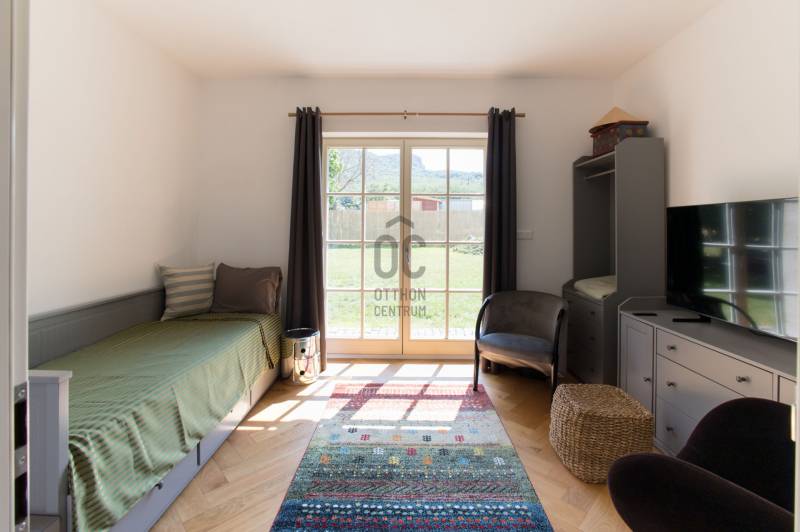 Badacsonytomaj egyik legintimebb részén kínáljuk megvételre ezt a 2024 elején elkészült, kivételes minőségben megvalósított luxus rezidenciát, amely minden részletében a kompromisszummentes igényességet és a nagyvonalú életérzést képviseli.A ház Badacsonyra panorámás, 170 m²-es. A földszinten található: előszoba, vendégszoba, vendégfürdő, tágas amerikai konyhás nappali, hálószoba, gardrób és még egy elegáns fürdőszoba. A nappali lenyűgöző, 6,5 méteres belmagassága nemcsak térérzetében, hanem hangulatában is különleges: a látványt tovább fokozza a kandalló valamint az egyedi gyártású osztott üvegfeületek. Anappaliból kiléphetünk a szibériai vörösfenyőből épült 25 nm-es teraszra, a konyhából pedig egy másik, árnyékos, nyáron is kellemes klímájú 25 nm-es teraszra. A nappaliból fával burkolt betonlépcső vezet a galériára, amely 34 m²-es pihenőteret/dolgozószobát kínál és igény szerint további 34 m²-rel bővíthető.Az enteriőr minden eleme egyedi gyártású, kizárólag prémium anyagok felhasználásával készült:– a padlóburkolat 18 mm vastag tölgy,– a galéria amerikai cseresznye,– az egyedi konyhabútor a legmagasabb kategóriás gépekkel felszerelt,– a nyílászárók háromrétegű, egyedi gyártású szerkezetek.A ház 30 cm-es téglafalazattal, 15 cm hőszigeteléssel, légréteggel és további 16 cm külső téglaburkolattal épült, Terrán tetőcseréppel fedve, a tetőszerkezet alatt dupla szigeteléssel. A modern komfortot hőszivattyús padlófűtés- és hűtés, valamint telefonról vezérelhető intelligens rendszer biztosítja (3×25A, H tarifa).Az ingatlan két helyrajzi számon helyezkedik el:– az első telken található a főépület, továbbá egy 125 m²-es gazdasági épület, amely garázst, borospincét és egy különálló garzont foglal magában;– a második telek félig már közművesített, balatoni panorámával rendelkezik, 30%-os beépíthetőséggel, így kivételes fejlesztési potenciált kínál.A kültéri élettér valódi ritkaság: a kertet a Folly Arborétum által telepített, nyilvántartott, különleges növényállomány teszi meseszerűvé – monumentális cédrusok, mamutfenyők, lombhullató fenyő, olasz ciprusok és válogatott gyümölcsfák (kivi, füge, alma, barack, dió, gesztenye) alkotják az élő díszletet. A kertben fákkal körülölelt halastó található különböző színű tavirózsákkal és aranyhalakkal. Az öntözést fúrt kút biztosítja.A kilátás egyszerűen lehengerlő: Badacsony, Gulács és a Tóti-hegy tárul fel teljes pompájában.Az ingatlan belterületi, lakóház minősítésű, így banki finanszírozással is megvásárolható – ideális választás azok számára, akik egy időtálló, értékálló, valódi presztízsotthont keresnek a Balaton-felvidék egyik legkülönlegesebb pontján.További információért vagy személyes megtekintés egyeztetéséhez forduljon hozzám bizalommal.Az adatok kizárólag a megbízóink által rendelkezésünkre bocsátott információkon alapulnak. Fentiekre tekintettel, az adatok teljességéért, helyességéért és aktualitásáért nem vállalunk felelősséget.Az árváltozás, adatmódosítás és közbeni értékesítés jogát fenntartjuk, mindezekért jogi felelősséget nem áll módunkban vállalni.