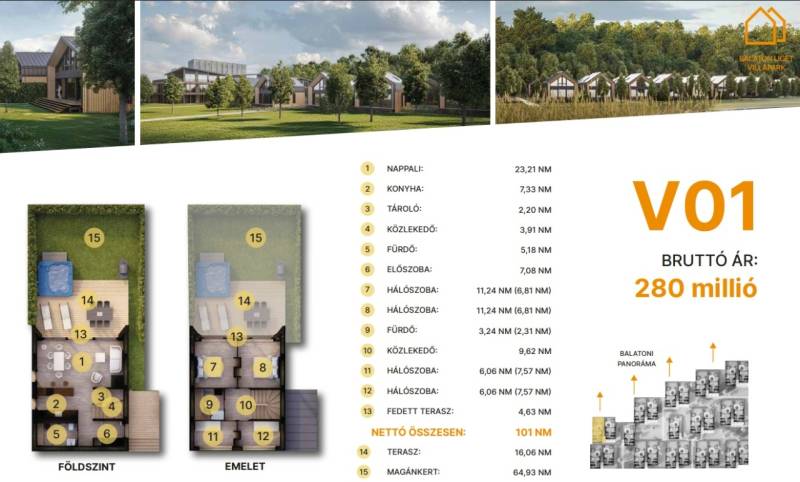 Balatonföldvár: Balatonföldvár fontos turisztikai célpont, nemcsak a magyarok, hanem más európai országok turistái számára is, természeti szépségei (például a löszhegy és a nagy virágos parkok), továbbá történelmi örökségei (például a kelta ösvény, a régi kúriák és villák) miatt számtalan szabadidős lehetőséget, valamint számos vízi sportot (vitorlázás, szörfözés, horgászat, evezés)Villák - kulcsrakész alapfelszereltség:100% tömör CLT Ausztriából.20 cm kőzetgyapot hőszigetelés.A+ energetikai besorolás.Fa hőszigetelő nyílászárók 3 rétegű üvegezéssel, tölgyfurnér melegburkolat.Porcelán greslap hidegburkolat.Villeroy fürdőszoba szaniterek,padlófűtés.Levegős hőszivattyú (VRV splitklíma), 2,5 kW napelem rendszer, elektromos redőny, szúnyogháló, beépített bútorok, homlokzati díszvilágítás.min. 16 m² teraszmin. 64 m² magánkert.Villák - választható opciók:Prémium konyhabútor konyhaszigettel, okosotthon rendszer, szauna (épületen belül), látvány design kandalló, 4 személyes prémium jacuzzi, gázos grillsütő.Privát zárt parkoló: 6.350.000. Ft.Privát elektromos autótöltő, kedvezményes hajóhely az új e-kikötőben.V. 01.A további kérdésekkel és a megtekintéssel kapcsolatban kérem keressen a megadott mobil számon.