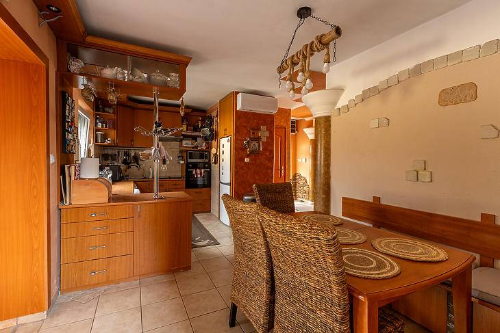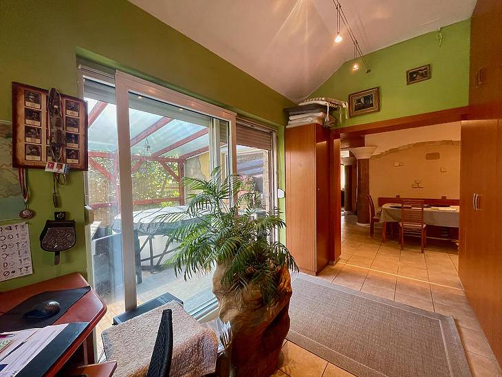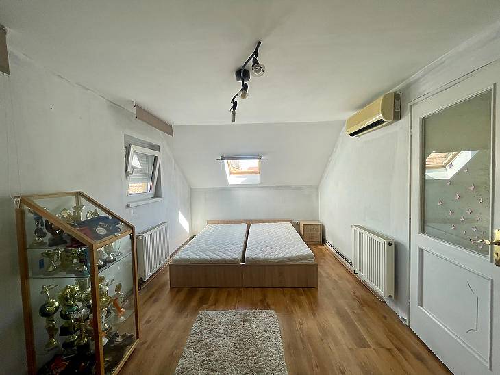 A 2000-ben épült, 150 négyzetméteres családi ház az 549 négyzetméteres telek első felében helyezkedik el, így helyet hagyva a hátul kiépítésre került kerti grillnek, beépített medencének, és egy 30 négyzetméteres melléképületnek, ahol egy szauna garantálja a maradéktalan kikapcsolódást.Az utcafront felőli 2 bejáratnak hála, az ingatlan tökéletesen alkalmas akár egy otthoni vállalkozás üzemeltetésére. Ehhez adott egy 30 négyzetméteres, 2 helységből álló, teljesen elszeparálható rész. Több generáció számára is ideális választás, még az se okoz gondot, ha több autó van a háznál. A 10 négyzetméteres tároló előtt helyet kapott egy 2 férőhelyes fedett garázs, valamint szabadtéri parkolóhely is kialakításra került további járművek számára.Az ingatlan banki finanszírozással is megvásárolható, melyben irodánk ingyenes tanácsadással áll rendelkezésére, hogy a jelenleg piacon lévő hitelkonstrukciók közül a legkedvezőbbet sikerüljön kiválasztani.További kérdés, valamint megtekintési szándék esetén, keresse irodánkat bizalommal!