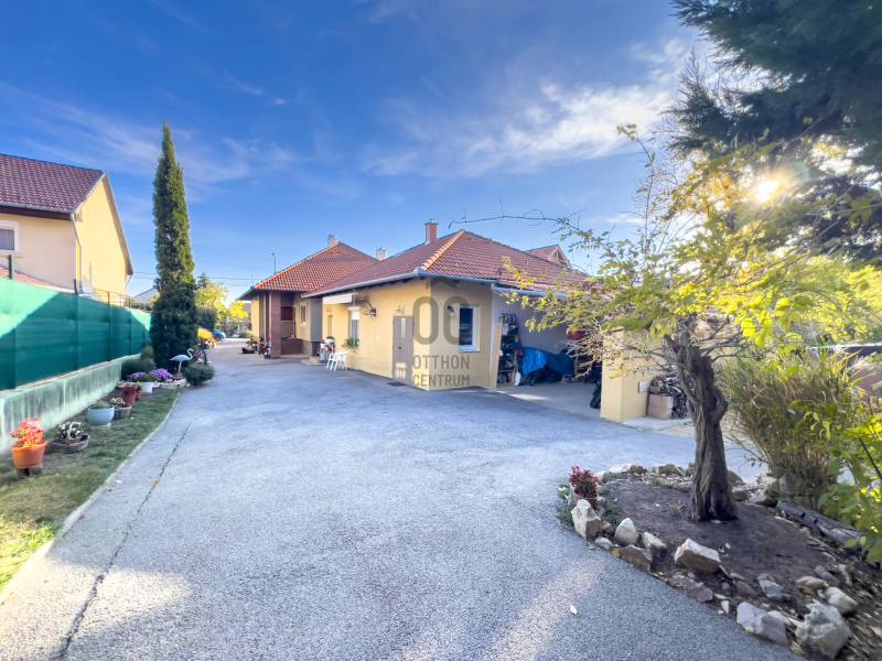Két különálló, felújított épület egy tágas, virágos telken – tökéletes választás kétgenerációs családoknak!Ezen a 1281 m²-es, gondozott, virágokkal teli telken egy 80 m²-es főépület és egy 50 m²-es különálló lakrész található. A két épület egymástól független, mégis közvetlenül egymás mögött helyezkedik el, így ideális megoldást kínál azoknak, akik szeretnének együtt, mégis külön élni.FőépületA főépületet 2017-ben teljeskörűen felújították, ami magában foglalta az elektromos hálózat teljes cseréjét, a belső burkolatok megújítását, valamint egy hűtő-fűtő klíma beépítését. A ház kívülről szigetelt, a háromrétegű, bukó-nyíló műanyag nyílászárók és a gázcirkó fűtés pedig biztosítják a kiváló hőmegtartást és az alacsony rezsit.Belépve egy tágas, világos nappali fogad, amely tökéletes a családi együttlétekhez. A modern, ízlésesen kialakított konyha minden szükséges kényelmet biztosít, a fürdőszoba és a WC külön helyiségben található, a házban pedig bőséges tárolási lehetőség áll rendelkezésre. A harmonikus elrendezés és az igényes kivitelezés igazán otthonossá teszi az ingatlant.Hátsó lakrész:A főépület mögött egy különálló, 50 m²-es lakrész található. Ez egy önálló, intim élettér, amelyben saját hálószoba és igényesen kialakított fürdőszoba kapott helyet. Tökéletes megoldás mindazoknak, akik szeretnék megőrizni a függetlenségüket, miközben közel maradnak a családhozTelek és környezetA 1281 m²-es telek rendezett, virágokkal és dísznövényekkel teleültetett kert, amely ideális hely a pihenésre, kertészkedésre vagy a családi együttlétekre. A tágas udvar lehetőséget ad akár további bővítésre, autóbeállásra, vagy egy kellemes kerti pihenő kialakítására is.Kinek ajánljuk?Ez az ingatlan kiváló választás kétgenerációs családoknak, akik szeretnének egymás közelében, de mégis külön élettérben élni.Ugyanakkor ideális nagyobb gyerekes családoknak is, ahol a fiatal felnőtt önálló lakrészt kaphat, de vállalkozóknak is remek lehetőség, hiszen a hátsó épület akár vendéglakásként vagy dolgozószobaként is hasznosítható.