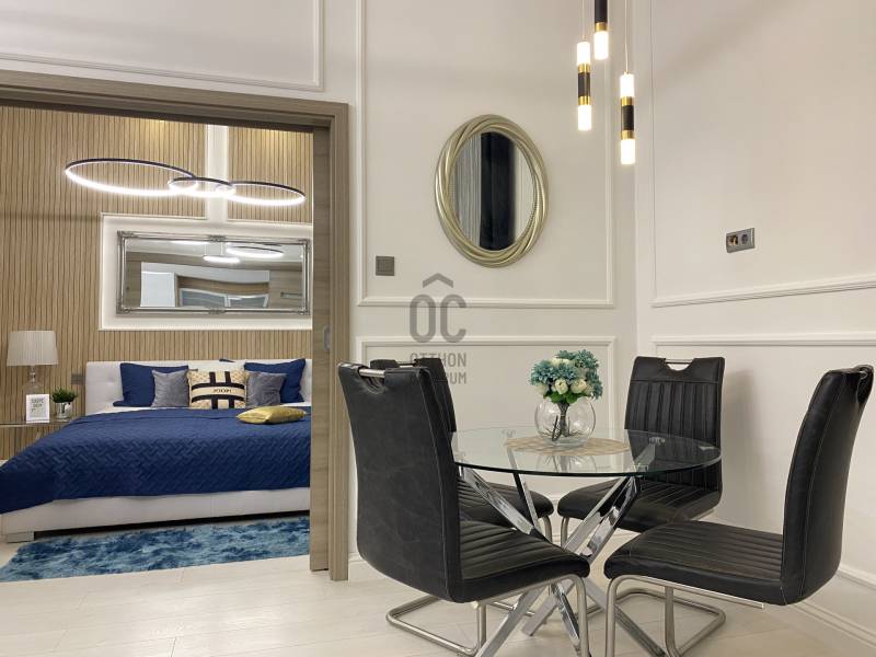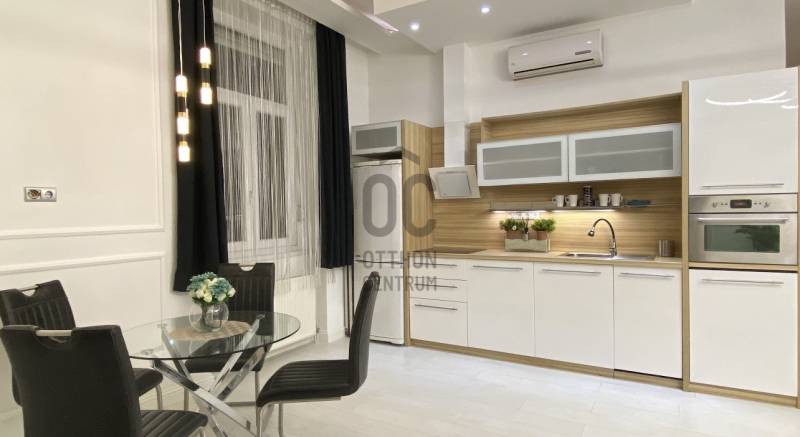 Budapest történelmi belvárosának egyik legnemesebb utcájában kínálom eladásra ezt a kifinomult ízléssel megálmodott, amerikai konyhás nappalival rendelkező, 3 szobás lakást. A patinás, klasszikus épület frissen felújított homlokzattal és tetővel rendelkezik, így a ház egyszerre sugároz régi eleganciát és modern megbízhatóságot.A nappali és étkező egybenyitott tere a lakás szíve: nagy ablakai beengedik a természetes fényt, a letisztult falburkolatok és a gondosan megválasztott dekoráció pedig harmonikus, magas presztízsű hangulatot teremtenek. A modern, kör alakú designlámpák, a mély kék kanapé és a geometrikus dohányzóasztal együttese olyan miliőt alkot, amely ritkán található meg a belvárosi ingatlanok között.A tágas hálószoba igazi nyugalomsziget: a prémium textíliák és a meleg tónusú fal háttér elegáns boutique hotel hangulatot idéznek. A gondosan összeválogatott dekorációk, a lebegő LED körlámpák és az egyedi elrendezés mind azt sugallják, hogy itt minden részletre figyeltek. A modern kényelmet cirkófűtés digitális termosztáttal, hűtő-fűtő klíma, redőnyök, valamint teljes gépesítés biztosítja. A lakáshoz tartozik egy 10 m²-es, ablakos tároló is, biztonsági ráccsal.A lakás minden részlete a valóságot tükrözi: a fotókon látható berendezés és dekoráció nem látványterv, hanem a tényleges állapotot mutatja. A BÚTORZAT A VÉTELÁR RÉSZÉT KÉPEZI, így az új tulajdonosnak nincs más dolga, mint birtokba venni ezt a kifinomult, magas minőségben kialakított otthont. Az átalakítás nemrég fejeződött be, ezért a lakás egy teljesen új, gondosan megtervezett enteriőrrel várja első lakóját – azonnal költözhető állapotban.A csendes mellékutcára néző lakás tökéletes választás azok számára, akik a belváros pezsgését szeretnék élvezni anélkül, hogy lemondanának a nyugalomról. A lakás néhány perc sétára található a Duna-parttól. A környék verhetetlen hiszen tele van hangulatos éttermekkel, kávézókkal, galériákkal és kulturális helyszínekkel és egyben kiváló közlekedéssel rendelkezik (busz, metro, villamos sétatávolságra). A belvárosi programok sokasága mind könnyedén elérhető.Akár egy esti séta a rakparton, akár borozás a barátokkal, egy színházi előadás vagy egy különleges vacsora – itt minden adott ahhoz, hogy a mindennapok is élménnyé váljanak.A kiváló elhelyezkedéshez nem fér kétség, a kényelmes, biztonságos környezet itt garantált!Ez az ingatlan nem csupán egy lakás, hanem egy gondosan megkomponált életstílus — prémium kivitelezéssel, luxus berendezéssel, azonnal költözhető állapotban, Budapest egyik legkeresettebb pontján. Bérbeadásra is kiváló lehetőséget kínál, megelőzően rövidtávú bérbeadás alkalmával folyamatos teltházzal üzemelt, filmes stábok is előszeretettel keresték.Aki különleges, magas színvonalú otthont keres a belváros szívében, annak ez a lakás valódi ritkaság.Keressen bizalommal és tekintse meg ezt az egyedi ingatlant!