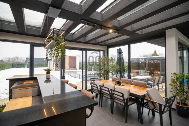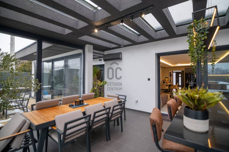 Exkluzív luxus családi rezidencia eladó Dabasi - Hernádon – kompromisszumok nélküli életstílusHernád egyik legnyugodtabb, presztízsértékű részén kínáljuk megvételre ezt a kivételes adottságokkal rendelkező, prémium felszereltségű luxus családi házat, amely minden részletében a minőséget, a kényelmet és a modern technológiát képviseli.\"A ház mögött nem csak kivitelezés, hanem komoly építészeti háttér áll. Az Xdot Építésziroda Kft. több száz megvalósult projektje, családi házaktól prémium lakásokon át, pályázati szinten elismert épületekig. Garancia az átgondolt tervezésre és a hosszú távon is értékálló otthonra.\"Az 363 m² alapterületű, kifogástalan állapotú ingatlan egy 1500 m²-es, gondosan kialakított telken helyezkedik el, és ideális választás mind exkluzív otthont kereső családok, mind értékálló befektetést keresők számára.A rezidencia négy tágas szobával, nappalival amerikai konyhával és 3 elegáns fürdőszobával rendelkezik, ahol a terek arányai és a funkcionális elrendezés a magas életszínvonalat szolgálják.Privát teraszélmények72 m²-es földszinti, fedett, zárt télikert – egész évben használható, reprezentatív élettér80 m²-es emeleti terasz, teljes felületén prémium műfű borítással, zavartalan pihenésre és kikapcsolódásra tervezveParkolás & tárolás – diszkréten megoldva2 gépkocsi számára kialakított fedett beálló, exkluzív méhsejtes LED világítássalA beálló mellett praktikus, esztétikus kerti tárolóBiztonság & intelligens otthonrendszerA ház teljes körű, professzionális védelemmel ellátott:HikVision kamerarendszer (5 kamera, ebből 1 kihangosítható)HikVision kaputelefon24 órás távfelügyeletre kötött biztonsági rendszerParadox hőérzékelőkMozgás- és nyitásérzékelők minden helyiségben és nyílászárónUjjlenyomatos és kódos prémium Marshall bejárati ajtóBelső terek – technológia és eleganciaDesign konyha rejtett szagelszívóval és LED megvilágítással, nyitásérzékelő Elektromos redőnyökAutomata víztisztító rendszerKülön kialakított edzőtér klímával, szellőztető rendszerrel, TV-vel és hangrendszerrelWellness & életstílusFűtött, tengervizes úszómedence, ellenáramoltatóvalMedencéhez tartozó külső zuhanyzóSüllyesztett sütögető – grillezési és bográcsozási lehetőséggelKültéri finn szauna (210x400)A kert végében elhelyezkedő, 40 m²-es, teljesen felszerelt, önálló edzőterem – privát fitness élmény kompromisszumok nélkülKert – fenntartható luxusFúrt kútról működő automata öntözőrendszerHusqvarna Automower 415X robotfűnyíróHangulatos, gondosan megtervezett kerti díszvilágításZárt terasz – a rezidencia ékköveKandalló és pizzasütőTeljes értékű, prémium kültéri konyha szigettel, sütővel és vaslappalHáromrétegű, hőszigetelt üvegtető2×2 szárnyú, elhúzható nyílászárók szúnyoghálóval→ tökéletes helyszín exkluzív vacsorákhoz, baráti összejövetelekhez, minden évszakbanJövőbiztos megoldásokHuawei 3 fázisú, 22 kW-os elektromos autó töltőFűtés, hűtésLevegő-víz hőszivattyúPadlófűtésKlíma hűtésBelső levegő keringetés300 literes, meleg víz bojlerEz az ingatlan nem csupán egy ház, hanem egy tudatosan megtervezett, magas műszaki és esztétikai színvonalú életstílus-rezidencia, ahol a luxus természetes módon válik a mindennapok részévé.Letisztult vonalak, intelligens megoldások és privát luxus – mindez egy harmonikus egésszé formálva. Ez az otthon nem követi a trendeket, hanem szintet képvisel.Az ilyen lehetőségek ritkán kerülnek piacra.Megtekintés kizárólag előzetes egyeztetés alapján.