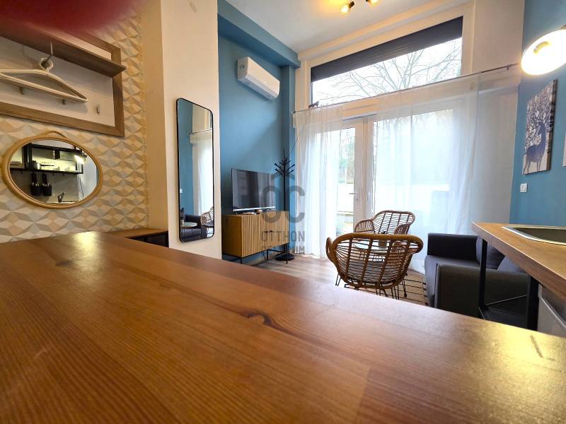 Balatonföldvár villanegyedében, központhoz, Balatonhoz közel kínálunk eladásra egy földszinti, egyszobás kis ÉKSZERDOBOZT.Nagy előnye az alacsony fenntartási költsége!Az épületet 2021-ben teljes körűen felújították úgy, hogy megfeleljen a modern igényeknek és elvárásoknak. Az átépítés folyamán törekedtek arra, hogy a tulajdonosok a legnagyobb kényelemben tölthessék szabad idejüket.Az épület tetején napozóteraszt alakítottak ki, ahonnan gyönyörű kilátás nyílik a Balatonra és az északi partra. Alsó szinten lévő közös helyiségbe mosókonyha található, így nem kell a lakásokban elhelyezni.A kertben egy kényelmes medence is található, körben napozóágyakkal, a tökéletes kikapcsolódásért.A lakás nettó 24nm, amihez egy dél-nyugati tájolású, +4nm-es terasz tartozik.Előnye, hogy szélső lakás, csak egy oldalról van szomszédja.Fűtése-hűtése klímával, illetve kiegészítésnek norvég panellel megoldott. Teljesen bútorozott, így nem kell gondoskodnia a berendezésről, és gyorsan birtokba veheti.A vételáron felül egy autónak parkoló kötelezően megvásárolandó.( ára 3millió Ft).Balaton part, éttermek, kávézók, fagyizók 5-10 perc sétával elérhetők. Balatonföldvár a Balaton déli partjának egyik legszebb, legelegánsabb kisvárosa. A XIX. század végén fürdőtelepként kiépült, platánsorokkal és patinás villákkal tarkított üdülőhely, amely sekély vize miatt családbarát célpont. Népszerű vitorláskikötőjéről, a Galambszigetről, Kultkikötőről és a kelta kori földvárról ismert. Amennyiben felkeltettem érdeklődését, keressen a hét bármely napján!