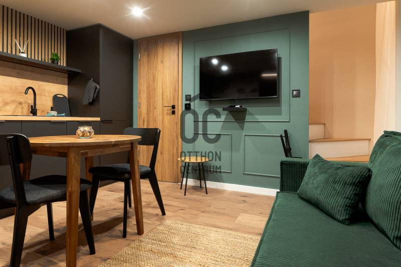 A VI. kerület frekventált részén, a Teréz körúton kínálunk megvételre egy belső kétszintes, teljes körűen felújított lakást, amely jelenleg is bérlővel együtt eladó, 1 éves fix bérleti szerződéssel – így azonnali hozamot biztosít új tulajdonosának.Az ingatlan 16,8 m² alapterületű, azonban a két szintnek köszönhetően a hasznos tér közel duplája, a belmagasság pedig jól élhető.Az alsó szinten amerikai konyhás nappali–étkező kapott helyet, modern, gépesített konyhával, míg a felső szinten egy külön hálószoba és fürdőszoba található. A lakás külön WC-vel is rendelkezik, ami ritka és kifejezetten praktikus megoldás ebben a méretkategóriában.A teljes felújítás során modern, igényes anyaghasználat és átgondolt belső kialakítás valósult meg. A fűtésről elektromos padlófűtés, a hűtésről klímaberendezés gondoskodik. A lakás leválasztott, osztatlan közös tulajdon, rendezett használattal.Központi elhelyezkedésének köszönhetően kiválóan kiadható: tömegközlekedés, üzletek, éttermek, kulturális és szórakozási lehetőségek néhány lépésre elérhetők.Ideális választás befektetőknek, akik stabil, azonnal működő bérbeadási konstrukciót keresnek Budapest egyik legkeresettebb városrészében.Közös költség: 5.000.-