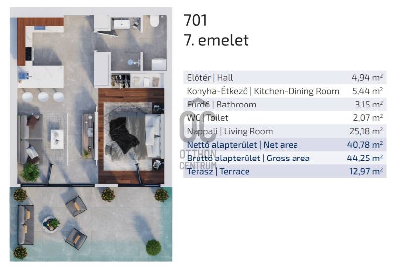 Debrecen egyik legmodernebb és legkülönlegesebb lakóépületében, az Egyetem Tower 7. emeletén kiadó egy luxus hangulatú, teraszos lakás 03.01-től.Az épület nem csupán társasház – valódi, szállodai színvonalú életérzést kínál: portaszolgálat, liftes teremgarázs, valamint tetőtéri wellness részleg medencével, szaunával és napozóterasszal. Az elegáns közösségi terek és a prémium kivitelezés minden részletében minőséget sugároz.Lakás adatai – br. 45 m² + 13 m² terasz:- világos nappali hálórész kialakítással (25 m²)- gépesített, modern konyha–étkező (5 m²)- elegáns fürdőszoba (5 m²)- praktikus előtér gardróbbal (5 m²)- hangulatos, privát terasz.Bútorozott, teljesen gépesített, letisztult és igényes enteriőr – ideális választás azoknak, akik kompromisszumok nélkül szeretnének élni egy új építésű, prémium környezetben.Parkolás: teremgarázsban bérelhető (+30.000 Ft/hó)Bérleti díj: 370.000 Ft/hó + rezsiMinimum bérlés: 1 évKaució: 2 haviTovábbi információért és megtekintésért várom hívását!