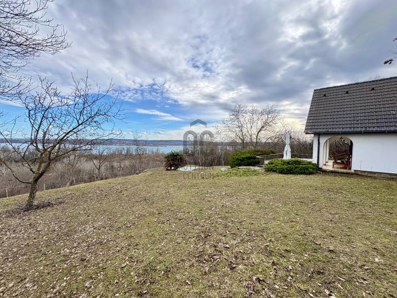 Tihany egyik legértékesebb és legnyugodtabb részén, a Cserhegyen kínálunk megvételre egy kivételes adottságú, örök balatoni panorámás birtokot, ahol a természet, a csend és a privát élettér tökéletes harmóniában találkozik. A 3309 m²-es, nyeles teleken elhelyezkedő 110 m²-es ház teljes elvonulást biztosít: a környező zöld, erdős, be nem építhető terület garantálja, hogy a Balaton látványa és a nyugalom örökre megmarad. A házra senki nem lát rá, az intimitás abszolút. A teraszról, a kertből és a medence mellől feltáruló panoráma minden napszakban lenyűgöző – vitorlásokkal tarkított víztükör, természetes zöld környezet, zavartalan csend. Főbb jellemzők: • 110 m² lakóterület • 3309 m², teljesen privát telek • Elvehetetlen balatoni panoráma • Medence, természetközeli kert • Központi fűtés, kandallóval • Közműellátottság • Bővíthető épület + pince kialakításának lehetősége • Felújítást igényel – egyedi, prémium otthon szabadon megálmodható A nagy telek és az építési lehetőségek kiváló alapot adnak egy exkluzív rezidencia, boutique vendégház vagy időtálló befektetés kialakításához. Tihany – presztízs és értékállóság Tihany a Balaton egyik legkeresettebb és legértékállóbb lokációja. A nemzeti park védettsége, a kulturális örökség, a gasztronómia és a páratlan természeti környezet garantálja az itt található ingatlanok hosszú távú értékét és presztízsét. Az ilyen adottságú, panorámás telkek rendkívül ritkán kerülnek piacra. Ez az ingatlan ideális választás azok számára, akik nem kompromisszumot, hanem életminőséget keresnek. Érdeklődés esetén forduljon hozzám bizalommal. Az ingatlan kizárólag előzetes egyeztetést követően tekinthető meg.Az adatok kizárólag a megbízóink által rendelkezésünkre bocsátott információkon alapulnak. Fentiekre tekintettel, az adatok teljességéért, helyességéért és aktualitásáért nem vállalunk felelősséget.Az árváltozás, adatmódosítás és közbeni értékesítés jogát fenntartjuk, mindezekért jogi felelősséget nem áll módunkban vállalni.