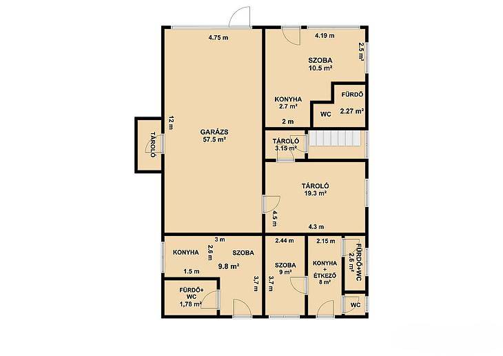 Gödöllő, Blahán, eladó egy 3 szintes, 203 m²-es, önálló családi ház, mely egy 719 m²-es telken helyezkedik el. Az ingatlan földszinti részén 3 külön bejáratú garzonlakás lett kialakítva, mely akár befektetésre, többgenerációs együttélésre vagy akár vállalkozási célra is ideális lehet, az emeleten pedig egy nagy lakás lett kialakítva. Főbb jellemzők:A ház 1990-ben épült, téglából, beton alappal és beton födémmel, homlokzatán 10 cm-es szigeteléssel. A ház fűtését cirkó kazán biztosítja, míg a meleg vízről villanybojler gondoskodik.A szobák laminált parkettásak, míg a többi helyiség hidegburkolatot kapott.A hátsó udvarban található egy szaletli is.Helyiségek, kialakítás:Földszint: 57 m²-es, fűtött, nagyméretű szerelőaknás garázs, amely akár több autó számára is ideálisKülön tárolóhelyiségek és gépészeti helyiségA szinten 3 külön bejáratú garzonlakás is kialakításra került.Magas földszint: 2 szoba, nappali + konyha + étkező, zuhanyzós/kádas fürdőszoba, mellékhelyiség, előszoba, közlekedő, nagyméretű terasz.Emelet:3 szoba, fürdőszoba + mellékhelyiség, galéria, 2 darab erkély.Környék: Gödöllő csendes mellékutcájában található. Közelben számos bevásárlási lehetőség, gyógyszertár, játszótér, edzőterem. Az M3-as autópálya pár perc alatt közelíthető meg. Közelben 5, 45, 14, 24, 34 buszjáratok érhetők el.Finanszírozás: Az ingatlan banki finanszírozással is megvásárolható, melyben irodánk ingyenes tanácsadással áll rendelkezésükre, illetve lehetőség van budapesti lakásra történő beszámítására is.Irányár: 199,9 M Ft. VEVŐINK RÉSZÉRE A KÖZVETÍTÉS DÍJTALANA hirdetésben szereplő adatok tájékoztató jellegűek.