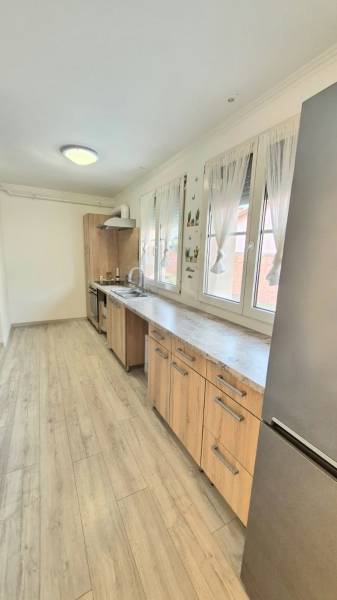 Baján, a Szentistván városrészben, kínálunk megvételre egy kiváló állapotú, utcafronti lakást, egy 2 lakásos társasházban.Az ingatlan 100 m² alapterületű, tágas és jól átgondolt elrendezésű: világos nappali, külön étkező, valamint 2 kényelmes méretű szoba biztosítja az élhető tereket. A déli fekvésnek köszönhetően egész nap napfényes, kilátása udvari és utcai irányba is nyílik.A lakás tégla és vegyes falazatú, kívülről szigetelt, műszakilag teljes körűen felújított:új villany- és vízvezeték-hálózat,korszerű Viessmann gázkazán,műanyag nyílászárók,biztonsági bejárati ajtó.A burkolatok igényesek: greslap és laminált padló kombinációja teszi otthonossá a tereket.A 450 m²-es telken belül 50 m² kizárólagos használatú kertrész tartozik a lakáshoz, amely tökéletes pihenéshez, kertészkedéshez vagy akár egy hangulatos kiülő kialakításához. A 12 m²-es terasz ideális helyszín reggeli kávézáshoz vagy baráti beszélgetésekhez.Udvari beálló biztosított, de igény esetén garázs is kialakítható.Ajánlom mindazoknak, akik nyugodt, mégis jól megközelíthető környezetben keresnek azonnal költözhető, igényes otthont Baján!Irányár: 40.990.000 Ft