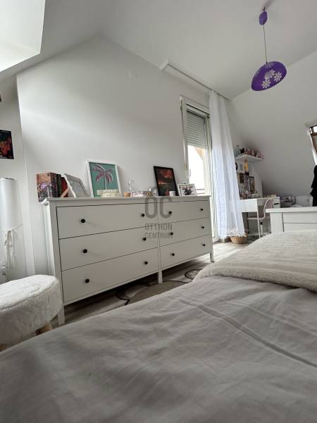 Debrecen SZÉCHENYI KERT városrészben, lakó-pihenő övezetben, eladásra kínálunk egy hangulatos, BELSŐ-KÉTSZINTES,2. emeleti lakást garázzsal, kis lakóközösséggel, 2004-ben épült társasházban!A 16,5 m2-es garázs megvásárlása OPCIONÁLIS!!Ára: 15 millió ft, a társasház alatt található, közvetlen bejárat az utcaszintről, előtte plusz egy gépkocsi megállhat!A praktikus elrendezésű beltér részletei:- 115/85 m2-es, világos otthon fiatalos, jó elosztású- 27 m2-es központi pozícióban lévő nappali-étkező, erkély kb 3 m2- 6 m2-es gépesített konyha, kamrával - 13 m2-es jól pakolható előszoba, közlekedő- 13 m2-es hálószoba, beépített egyedi gardróbszekrényekkel, erkély 3 m2- 8 m2-es nagy méretű, kényelmes, kádas fürdőszoba, wc-velTetőtéri elrendezés:- 4 m2-es emeleti, zuhanyzós fürdőszoba-wc- 6 m2-es közlekedő- 11 m2-es szoba, francia erkély- 8 m2es szoba- lépcsőfeljáró- Gázkazános fűtés radiátor hőleadókkal- 2 db klíma- redőnyös-rovarhálós műanyag nyílászárók- az emeleten tetőtéri ablakok árnyékolóval- riasztórendszer- beépített bútorok, amik a vételár részét képezikA lakást részben felújították:- laminált padló cseréje megtörtént emeleten és a nappaliban- gázkazán csere- az ingatlant festették- beépített bútorok készültekA társasházról:- 2004-ben, téglából épült- kis lakóközösség,4 lakás található a házban- társasházi rendezett, gondozott kert- kerti sütögető a lakók számára- kaputelefon cseréje megtörtént- tetőszigetelés + homlokzati javítás és festés megtörtént A SZÉCHENYI kert nagyon közkedvelt és keresett lokáció, kiváló közlekedés jellemzi a városrészt, a Belváros percek alatt elérhető gépkocsival, illetve kerékpárral vagy gyalogosan.Kertvárosi rész, rendezett, új vagy felújított családi házak, illetve kis létszámú újabb építésű társasházak jellemzik.Csendes, kis forgalmú utcák, parkosított területek igazán közkedvelt városrésszé tették ezt a területet!A lakás méretei és elosztása lehetővé teszi, hogy több gyermekes család is kényelmesen élje a hétköznapokat biztonságos, nyugodt környéken!Ajánlom akár befektetésre is, hosszú távra, mert értékállóságát a kiváló lokáció garantálja!További kérdéseivel állok rendelkezésére, akár hétvégén is!