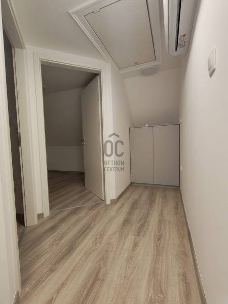 Eladó egy modern 40 m²-es, kétszintes, újszerű állapotú lakás, letisztult stílussal.Az alsó szinten található a konyha - étkező és nappal, amely világos, jól tagolt térrel rendelkezik.A konyha modern, beépített bútorokkal és gépekkel felszerelt. Ezen a szinten található a zuhanyzós fürdőszoba WC-vel, igényes burkolatokkal, valamint a lépcsőfeljáró.A felső szinten két különálló hálószoba kapott helyet, tetőtéri kialakítással. A ferde síkok hangulatosak, a helyiségek jól használhatók, természetes fénnyel tetőablakokkal megvilágítottak. Beépített szekrények, praktikus helykihasználást.A lakásra jellemző:modern, semleges színvilágminőségi burkolatokklímaberendezésletisztult, minimalista belső térkiváló elosztás kis alapterület mellett isIdeális választás fiatal pároknak, kis családnak vagy befektetésnek is.