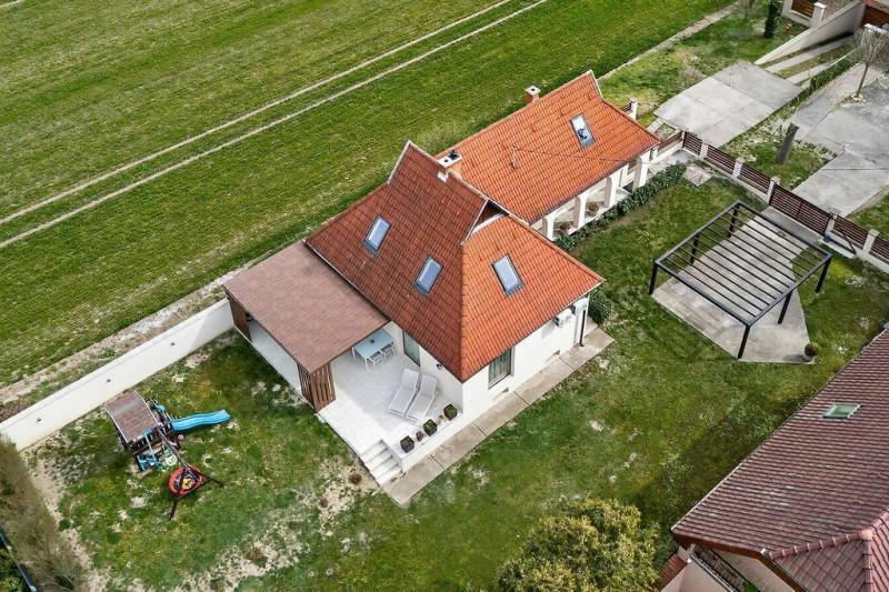Ha fontos Önnek a békés környezet, a kiváló műszaki állapot és az azonnal költözhető otthon, akkor ezt az ingatlant érdemes megnéznie!A 1995-ben épült, 698 m²-es telken elhelyezkedő, tégla falazatú, szigetelt családi ház cserép tetőfedéssel készült, állapota újszerű. Az elmúlt években több korszerűsítés is történt, így valóban csak költözni kell.Műszaki tartalom:• 2021-ben beszerelt Bosch kondenzációs kazán• Radiátoros hőleadás• 3 db hűtő-fűtő klíma• Modern, 3 rétegű nyílászárók• 3×25 Amper + H tarifa• Kiépített wifis kamerarendszer• Riasztó• Elektromos kapu és Hörmann garázskapuPraktikus, jól átgondolt elosztásFöldszint:• Előtér• Tágas nappali-étkező• Konyha kamrával• Fürdőszoba• Külön mellékhelyiség• 1 hálószobaA nappaliból közvetlen kijárat nyílik a 40 m²-es teraszra, amelyből 25 m² fedett. A pergola gondozásmentes anyagból készült, akárcsak az utcafronti kerítés – esztétikus és időtálló megoldás.Tetőtér:• 2 kényelmes méretű szoba• Gardrób helyiség• Fürdőszoba WC-velSzuterén szint:• Gépészeti helyiség• Tároló• Műhelynek vagy hobbihelyiségnek ideális tér• GarázsA ház ideális választás családok számára, akik nyugodt, biztonságos környezetben szeretnének élni, mégis elérhető távolságban a fővárostól. Zsámbék kiváló infrastruktúrával, óvodával, iskolával, bevásárlási lehetőségekkel rendelkezik.Ez az otthon egy valódi „kulcsrakész” lehetőség – jogilag rendezett, szerethető környezetben.Amennyiben egy igényes, jól karbantartott, azonnal költözhető családi házat keres Zsámbékon, várom megtisztelő megkeresését!