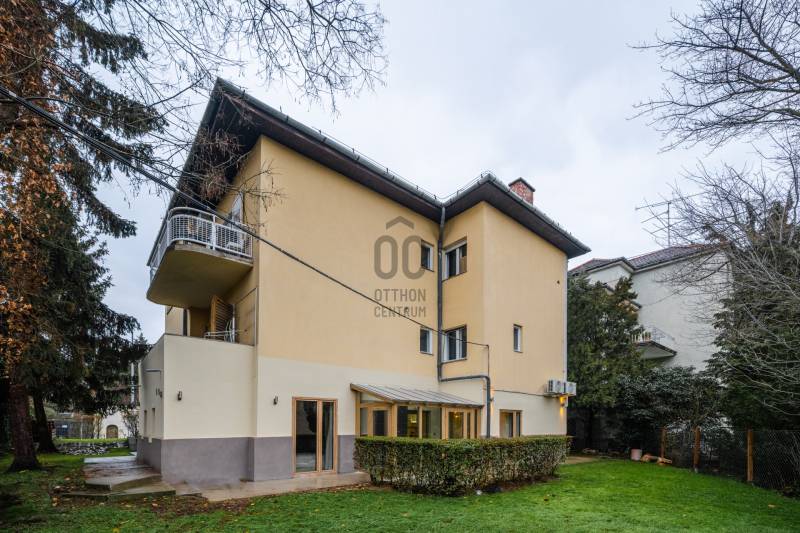 Belbuda szívében, a Stromfeld Aurél út csendes, zöldövezeti szakaszán, a Németvölgyi út közvetlen közelében kínálunk megvételre egy 110 m²-es, három hálószobás, kertkapcsolatos, prémium minőségben felújított otthont.Az 1930-as évek klasszikusan modern Bauhaus építészetének karakteres jegyei a mai kor igényeivel találkoznak: a lakás teljes körű felújítása során az esztétika, a funkcionalitás és az időtállóság egyensúlya volt az irányadó.A padlófűtéssel temperált, napfényes télikerten keresztül érkezünk az otthonba, amely elegáns átmeneti térként fogad, és természetes kapcsolatot teremt a nappali–konyha–étkező térrel. Ez a nagyvonalú, világos egység a családi élet és a vendéglátás ideális színtere.A privát lakrészek kifinomult arányai biztosítják az intimitást: szülői háló, további hálószobák vagy dolgozószoba, igényesen kialakított fürdők, valamint átgondolt tárolórendszer — beépített szekrényekkel, gardróbbal és külön háztartási helyiséggel.Prémium műszaki tartalom:- Padlófűtés a közösségi terekben, radiátoros hőleadás a hálókban,- Külön helyiségben elhelyezett, korszerű gázcirkó rendszer,- Saját klímaberendezés minden szobában,- Háromrétegű, magas minőségű nyílászárók,- Elektromos redőnyök a hő-, fény- és hangkomfort érdekében.A gondozott, zöld kertkapcsolat és a környező fás udvarok a budai nyugalom tökéletes hátterét biztosítják, miközben a városi infrastruktúra — üzletek, éttermek, piac és szolgáltatások — kényelmes sétatávolságban elérhető.Ez az ingatlan nem csupán lakóhely, hanem presztízsértékű, karakteres otthon Belbuda értékálló mikrokörnyezetében — azok számára, akik a minőséget, az építészeti karaktert és a zavartalan nyugalmat egyaránt értékelik.Kifinomult budai életforma, kompromisszumok nélkül. ✨