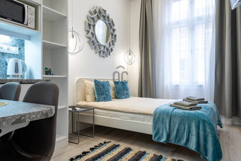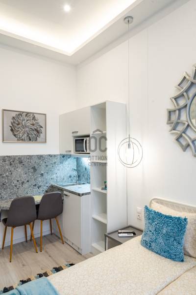 BEFEKTETŐK FIGYELEM! KÉSZ ÜZLETI MODELL ELADÓ A V. KERÜLETBEN!Eladásra kínálunk egy professzionálisan átalakított, 58 nm-es, 4. emeleti ingatlant a méltán népszerű Petőfi Sándor utcában. Az ingatlan nem csupán egy lakás, hanem egy bejáratott, jelenleg is profitot termelő termék.Az ingatlan különlegessége:A lakás belsőépítészeti tervezés során 3 teljesen különálló egységre lett osztva. Minden egység saját:zuhanyzós fürdőszobával,praktikus konyhasarokkal,és kényelmes háló-pihenő résszel rendelkezik.Miért ez a legjobb választás befektetésnek?Rövid távú kiadásra optimalizálva: A kialakítás kifejezetten a budapesti turizmus igényeihez lett igazítva, így a kihasználtság és a napi szobaár maximalizálható.Passzív jövedelem: Az ingatlan profi üzemeltető csapattal együtt eladó, akik a vendégfogadástól a takarításig mindent intéznek – Önnek csak a hozamot kell élveznie!Lokáció: Az V. kerület szíve, a Váci utca és a Deák Ferenc tér közvetlen szomszédsága garantálja, hogy a lakás az év 365 napján vonzó a turisták számára.4. emeleti elhelyezkedés: Világos egységek egy liftes, karbantartott épületben.Műszaki állapot:Az ingatlan teljes körű műszaki és esztétikai felújításon esett át (vezetékek, burkolatok, gépészet), a mai kor igényeinek megfelelő modern berendezéssel és stílusos dekorációval kerül átadásra.Ez a lakás azoknak szól, akik nem felújítani és tervezgetni szeretnének, hanem egy azonnal kész, működő és mérhető hozamot produkáló ingatlant keresnek Budapest legértékesebb negyedében.További információért várom szíves hívását !
