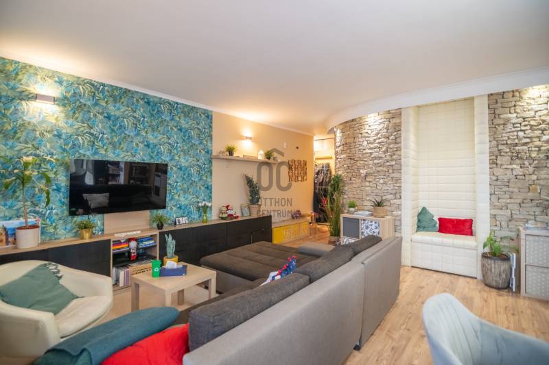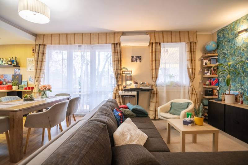 Megvételre kínálunk egy igényesen felújított KERT ÉS TERASZKAPCSOLATOS társasházi lakást a XIX. kerületben!Az ingatlanról:✔️tulajdoni lapon 94 m2-es,✔️közvetlen kijárat a nappaliból a 30 m2-es saját teraszraRészei: tágas amerikai konyhás nappali, 2 hálószoba. fürdőszoba, közlekedő, előszoba✔️Nyugati tájolású napfényes lakás✔️ablakai műanyagok✔️nappaliban Gree hűtő/fűtő klíma✔️fűtéséről gáz cirkó gondoskodik (rezsi költsége kedvező, fűtés maximum 15.000 Ft.)✔️belmagasság 268 cm✔️A lakáshoz tartozik egy felszíni autóbeálló és egy tároló is.A Házról:✔️2001-ben épült téglából.✔️24 lakásos társasház.✔️Jó lakóközösség jellemzi✔️A társasház elkerített, saját kerttel játszótérrel és közösségi terekkel ellátott.✔️Kertben öntözőrendszer✔️2025-ben újította a ház a tetőt!Ajánlom mindenkinek!Hitelre is megvásárolható!Ha felkeltette érdeklődésedet keress a hét bármelyik napján!