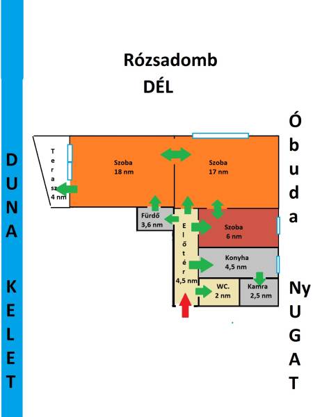 A lakás beosztása némileg variálható.A burkolatok-, vezetékek-, a külső- és belső nyílászárók megértek a cserére. A ház karban tartott és tiszta.A lakás alfája és omegája viszont a PÁRATLAN elhelyezkedés.Helyrajzi szám szerint az épület Árpád fejedelem úti számozású, de nem ott kint a HÉV mellett van; egy park van előtte. Azért jó az elhelyezkedése, mert van egy házsor előtte, ami nem engedi át a zajokat, viszont a kilátást nem akadályozza, ellátni felette. A Duna miatt pedig állandó friss levegő van itt.Sőtt, körben ellátni minden felett, keleten, délen nyugaton.3 irányból tájolt, 3 irányból különböző panorámával.A napfelkelte a Duna felől érkezik, délben a Rózsadomb irányából süt a nap, délután pedig Óbuda felől.Ez az egyetlen épület itt, ahol nyugalom van, mégis közel van a Duna.