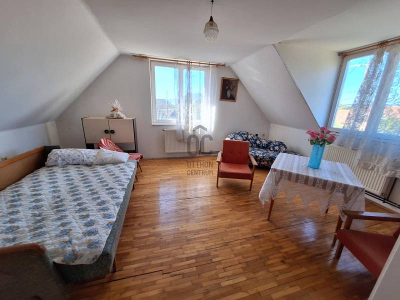 Csendes környezetben, de mégis közel a központhoz eladó vált egy tágas, nagy, kétszintes családi ház Tapolca központi részén.Az ingatlan könnyen megközelíthető, iskola, óvoda, bevásárlási lehetőség a közelben, melyek gyalogosan is könnyen elérhetőek.A 471 nm-es belterületi, körbekerített telken álló ház két szinten összesen 150 nm. Ehhez került még hozzáépítésre egy fedett garázs, valamint tároló, ahol a kazánház is található.A ház alsó szintjén teraszon át lépünk be a házba, itt egy nagy előszobából közelíthető meg 2 hálószoba, a nappali, konyha étkezővel és spájzzal, fürdőszoba és különálló Wc. A teraszról egy külső bejárattal rendelkező tároló is elérhető.Az emeleten 3 gyönyörű, világos, nagy ablakos szoba és egy fürdőszoba található.A déli szobák ablakából szép, a Szent-György hegyre néző panoráma tárul elénk.Az ingatlan melegét radiátorok adják, a fával való fűtésről egy vegyes tüzelésű kazán gondoskodik.Amennyiben kérdése merülne fel az ingatlannal kapcsolatban vagy szeretné azt megtekinteni, kérem keressen amegadott elérhetőségek egyikén!Az adatok kizárólag a megbízóink által rendelkezésünkre bocsátott információkon alapulnak.Fentiekre tekintettel, az adatok teljességéért, helyességéért és aktualitásáért nem vállalunk felelősséget.Az árváltozás, adatmódosítás és közbeni értékesítés jogát fenntartjuk, mindezekért jogi felelősséget nem áll módunkban vállalni.