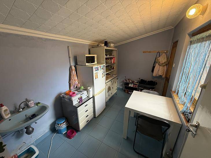 SZENTENDRÉN A VASÚTI VILLASOR KÖRNYÉKÉN ELADÓ EGY HÉV KÖZELI HÁZRÉSZ!KÖRNYÉK:A háztól a HÉV-megálló mindössze 13 perc kényelmes sétával elérhető, míg Szentendre hangulatos belvárosa csupán 10 perc gyalogosan. A környék infrastruktúrája kiváló: néhány perces sétatávolságon belül számos üzlet és étterem áll rendelkezésre. Emellett a Móricz Zsigmond Gimnázium is mindössze 7 percre található az ingatlantól.A HÁZ JELLEMZŐI:-Alapterület: 50 m²-Telek: 160 m²-Kert: 66 m²-Az ingatlan 1972-ben épült, B30-as téglából, beton alappal és fafödémmel.-A fűtést gázkonvektor biztosítja, míg a melegvíz-ellátásról átfolyós gázbojler gondoskodik.-Az egyik szobában korszerű, kétrétegű műanyag nyílászárók találhatók, a másik szobában eredeti fa nyílászárók vannak, a konyhában pedig kétrétegű fa nyílászárók kerültek beépítésre.-Az épület egyik oldalfala szigeteléssel rendelkezik.-Parkolás a kertben egy gépjármű számára biztosított.-Az ingatlan külön bejárattal rendelkezik. -A közművek nincsenek különválasztva, a gáz viszont almérő órával rendelkezik. FINANSZÍROZÁS:-Az Otthon Start, 3%-os hitellel nem megvásárolható!-Banki finanszírozással is megvásárolható, melyben irodánk ingyenes tanácsadással áll rendelkezésükre!VEVŐINK RÉSZÉRE A KÖZVETÍTÉS DÍJTALAN!A hirdetésben szereplő adatok tájékoztató jellegűek!