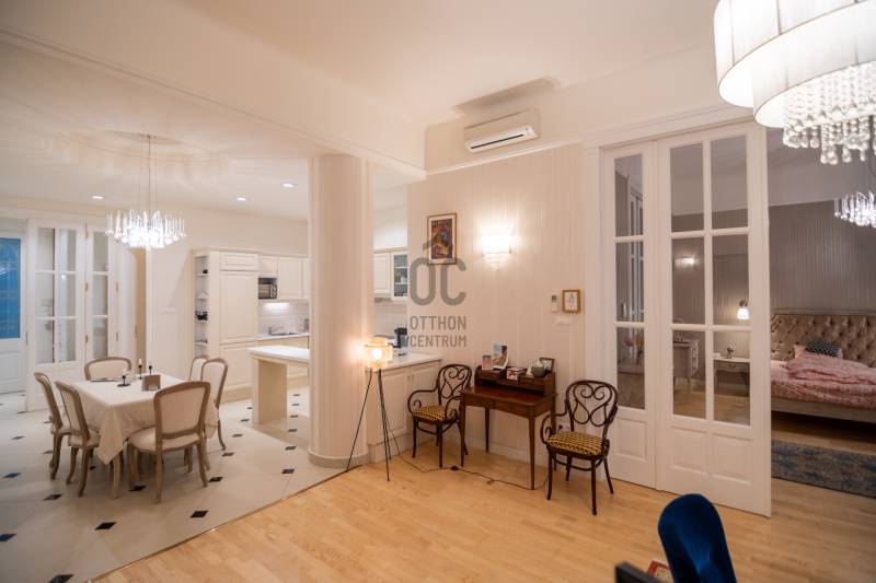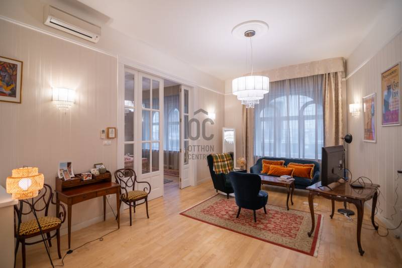 EXKLUZÍV OTTHON ÖNNEK - VÁROSNÉZÉS MINDENKI MÁSNAKTörténelmi polgári lakás Budapest V. kerületének patinás városrészében ahol az időtlen elegancia és a múlt értékei találkoznak.HOL FOG LAKNI? A Kígyó utca Budapest V. kerületének egyik legelőkelőbb belvárosi utcája, ahol a patinás épített örökség és a modern városi élet tökéletes egyensúlyban van. A környéket kifinomult városi élet, impozáns épületek és kiváló infrastruktúra jellemzi, néhány lépésre a Váci utcától és a Duna-parttól. A közelben exkluzív üzletek, kávézók, éttermek és kulturális látnivalók sora található. A kiváló tömegközlekedési kapcsolatoknak köszönhetően a város bármely pontja gyorsan és kényelmesen elérhető. Ez a lokáció ideális választás mindazok számára, akik a belvárosi eleganciát és az időtlen értékeket keresik.HOVA ÉRKEZIK HAZA?A társasház a belvárosra jellemző polgári építészeti stílust képviseli, rendezett és igényes megjelenéssel. A klasszikus homlokzat és a belső terek időtálló eleganciát sugároznak. A ház karbantartott lépcsőházzal, lifttel és közös terekkel, kulturált lakóközösséggel és nyugodt, biztonságos környezettel rendelkezik. Elhelyezkedésének köszönhetően egyszerre kínál belvárosi pezsgést és visszafogott, reprezentatív lakókörnyezetet.MILYEN LESZ A LAKÁSA?Az I. emeleti, polgári stílusú lakás tágas terekkel és kifinomult arányokkal rendelkezik, megjelenése elegáns és harmonikus. A letisztult színek kifinomult hangulatot és időtálló, nemes összhatást adnak. A szobákban klasszikus parketta, míg a lakás többi részén egységes stílusos járólap található. A délkeleti fekvésű lakásban három szoba közül kettő a Kígyó utcára, egy pedig a csendes belső udvar irányába néz. A konyha és az étkező egy nagyméretű térben kapott helyet, amely közvetlenül kapcsolódik a rendkívül tágas nappalihoz, ideális teret biztosítva a mindennapi élethez. A 20 négyzetméteres hálószobához tartozik egy közel 8 négyzetméteres gardrób is mely tolóajtókkal leválasztható a lakótértől. A második hálószoba a lakás északnyugati felében található és abban is helyet kapott egy beépített gardrób szekrény.A zuhanyfülkés fürdőszoba mellet egy plusz vendég mosdó is található, ami az előtérből érhető el.ALAPADATOK:- hasznos alapterület: 102 m2- 3 szoba- I. emelet- van lift- fürdőszoba- külön mellékhelyiség- tájolás: DK-iGÉPÉSZETA fűtést gáz cirkó biztosítja illetve a járólappal burkolt helyiségekben (konyha, étkező, fürdőszoba, mellékhelyiség, előtér) padlófűtés is van. Nyáron a hűtést két klíma egység biztosítja, amik a nappaliban illetve a nagy hálószobában kaptak helyet.Az utcafronti ablakokon elektromos redőnyökkel sötétíthető a lakás. Az ingatlant 8 évvel ezelőtt felújították mely során modernizálták a fűtésrendszert, megtörtént a fürdőszoba és a vendég mosdó komplett vízszerelése, elvégezték az ingatlan világításának teljes felújítását vezetékezéssel együtt illetve kiépítették a szükséges hálózatot a konyhában található főzőlap számára.MIÉRT EZ A LAKÁS?Tökéletes választás mindazok számára, akik Budapest szívében, történelmi környezetben, mégis a modern belvárosi élet középpontjában szeretnének élni. A kiváló elhelyezkedés, az elegáns állapot és a patinás társasház ritka és értékálló kombinációt alkot. A Duna-part és a Váci utca közelsége egyedülálló életérzést kínál a mindennapokban. Presztízs, kényelem és időtálló érték egyetlen ingatlanban.Díjmentes, bankfüggetlen hiteltanácsadással támogatjuk vevő ügyfeleinket a számukra legelőnyösebb finanszírozási döntések meghozatalában. Opcionálisan igénybe vehető kiegészítő szolgáltatásainkkal – mint ügyvédi közreműködés, energetikai tanúsítvány vagy villamos biztonsági felülvizsgálat – teljes körű szakmai támogatást nyújtunk az adásvétel folyamatának minden egyes lépésénél.