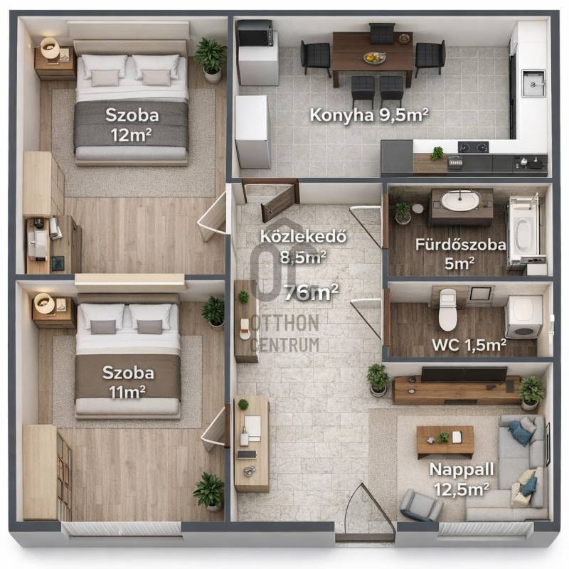 Exkluzív lehetőség Nyíregyháza belvárosában – 76 nm-es, parkra néző, erkélyes lakás!Nyíregyháza belvárosának egyik csendes, aszfaltozott utcájában kínálunk megvételre egy 76 nm-es, második emeleti, tégla építésű társasházi lakást, amely elhelyezkedésével és adottságaival egyaránt kiemelkedik a kínálatból.A tájolásnak köszönhetően a lakás egész nap világos, napfényes terekkel rendelkezik. A három külön nyíló szoba élhető, jól bútorozható, a praktikus elrendezést külön fürdőszoba és WC egészíti ki. Az erkély parkra néző kilátása ritka érték a belvárosban: nyugodt, zöld környezetet biztosít a mindennapokhoz.Műszaki tartalom és komfort:-tégla építés-gáz konvektoros-klímaberendezés-műanyag nyílászárók-liftes lépcsőház-önálló, zárható pincerész-alacsony, mindössze 9.200 Ft-os közös költségA lokáció kiváló: minden fontos szolgáltatás, intézmény, üzlet és közlekedési csomópont néhány percen belül elérhető, mégis csendes, élhető környezetben található az ingatlan.Ez a lakás ideális választás többgyermekes családok számára a három külön nyíló szoba miatt, fiatal pároknak hosszú távra tervezett, értékálló otthonként, valamint befektetőknek is, hiszen belvárosi elhelyezkedése, parkra néző adottsága és kedvező fenntartási költségei stabil bérbeadhatóságot biztosítanak.Egy átgondolt döntés azoknak, akik nem csupán lakást, hanem valódi értéket keresnek.A hirdetésben szereplő információk a megbízótól kapott adatok alapján készültek, pontosságukért felelősséget nem vállalunk!Amennyiben vásárláshoz hitelre is szüksége van, független hitel tanácsadónk ingyenesen tud Önnek segítséget nyújtani a legjobb konstrukciók kiválasztásában és a folyamat lebonyolításában. Irodánk kereső ügyfeleinknek teljes körű szolgáltatást nyújt, szakszerű tanácsadással, energetikai tanúsítvány elkészítésével, hitelügyintézéssel és profi ügyvédi segítséggel. Abban az esetben ha az ingatlan felkeltette érdeklődését keressen bizalommal!A HIRDETÉSI ADATOK ÉS AZ ALAPRAJZ TÁJÉKOZTATÓ JELLEGŰEK !