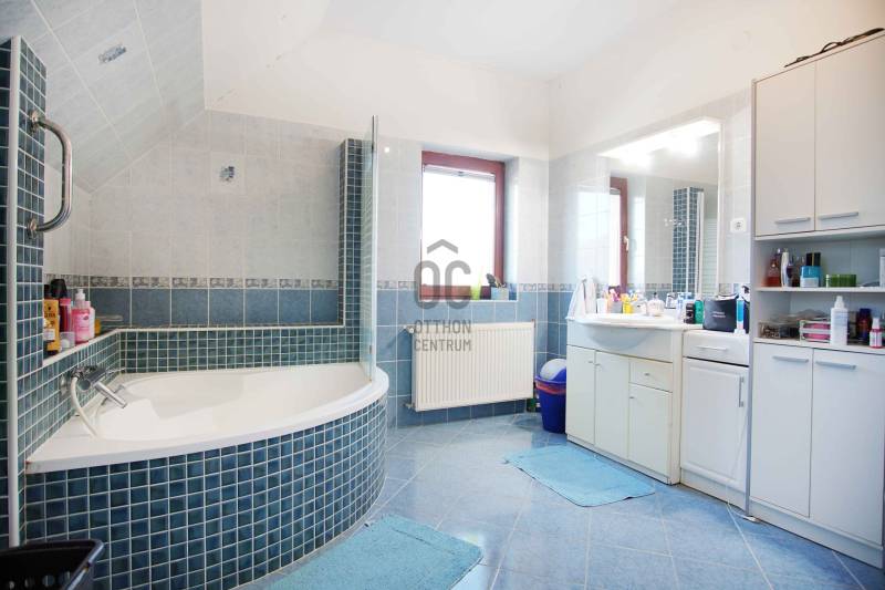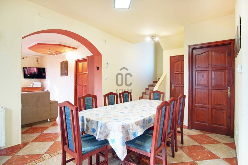 Megvételre kínálunk Pomázon, egy 700 m²-es, gondozott telken elhelyezkedő, masszív szerkezetű, kényelmes elrendezésű családi házat, különálló garázzsal, amely igény szerint akár önálló lakrészként is hasznosítható.Főépület:- A 2004-ben épült ház 38 cm-es Porotherm téglából, betonfödémmel készült, szerkezeti minősége a mai napig kiemelkedő.- A tulajdonos saját részre tervezte, ennek köszönhetően az elrendezés átgondolt, a terek tágasak és élhetőek – valódi ritkaság a mai kínálatban.- Mindkét szinten teljes értékű fürdőszoba és WC található, ami többgyermekes vagy kétgenerációs család számára kifejezetten praktikus.- Az emeleten 3 különálló erkély található, minden szobából közvetlen kijárattal.- A nagy teraszról, a felső szintről és a szobákból szép panoráma nyílik, míg a hátsó kert intim, kellemes méretű teret biztosít pihenéshez, családi összejövetelekhez vagy gyerekek játékához. A kertben diófa, cseresznye (valóban nagyon finom), barack és tuják találhatók.- A homlokzaton néhány befejezésre váró rész (pl. színezés, erkélyek kialakítása) még hátravan, ezeket a jelenlegi tulajdonos a birtokbaadásig elvégzi.Különálló épület:- A ház mellett egy kétállásos, vizesblokkal ellátott garázs található, amely kisebb ráfordítással akár teljes értékű, különálló lakássá is alakítható.Összegzés:- Ez az ingatlan egy igényesen megépített, jól átgondolt családi ház, amely ideális választás:- Többgenerációs együttélésre,- Otthon és vállalkozás kombinálására,- vagy hosszú távú, értékálló befektetésnek.A ház minőségi szerkezete, praktikus elrendezése és a melléképület által kínált plusz lehetőségek együttese ritka értéket képvisel Pomáz ingatlanpiacán.Várom a hívását! Amennyiben nem venném fel, ígérem amint lehetőségem adódik, visszahívom.Ez az ingatlan a \"Felező csomag\" megbízási portfólióhoz tartozik. Részletek az Otthon Centrum weboldalán.