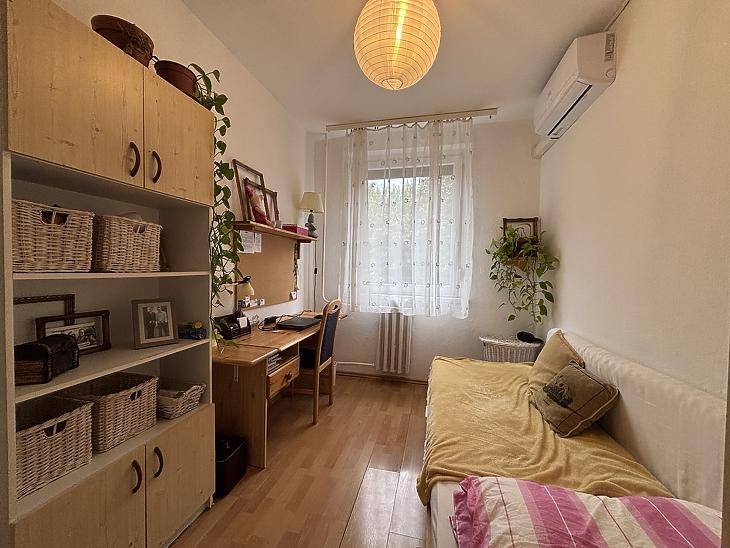Budapest XIX. kerületében, kiváló tömegközlekedéssel és ellátottsággal rendelkező részen eladó egy jó állapotú, 59 m²-es, 1+2 fél szobás, első emeleti lakás.Az ingatlan praktikus elosztású, szobái külön nyílnak, a konyha pedig kifejezetten nagy és tágas, így étkezőként is jól használható, családok számára is kényelmes megoldást kínál. A nyílászárók műanyagok, a burkolatok jó állapotúak, a szobákban parketta található. A délkeleti fekvésnek köszönhetően a lakás világos, napfényes.A komfortot három darab klíma biztosítja, a fűtés távhőről működik, fix 12.000 Ft havi díjjal. A közös költség 28.000 Ft/hó, amely tartalmazza a vízdíjat és a felújítási alapot is. A lakáshoz tartozik továbbá egy 5 m²-es saját pince, amely kiváló tárolási lehetőséget kínál.Az ingatlan 1/1 tulajdonban van, per- és tehermentes.A környék infrastrukturális szempontból rendkívül előnyös: a közelben található a Kossuth téri piac, Aldi, Lidl, több óvoda, iskola, gyógyszertár és orvosi rendelő. A közlekedés kiváló: 42-es és 50-es villamos, valamint az M3-as metró is gyorsan elérhető – a belváros körülbelül 30 perc alatt megközelíthető.Vevőnk számára a közvetítés díjtalan!Ingatlanját díjmentesen érték becsüljük!