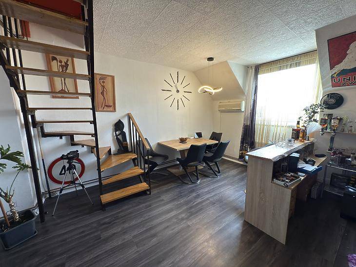 SZENTENDRÉN A FÜZES PARKBAN ELADÓ EGY ÖRÖKPANORÁMÁS 3. EMELETI LAKÁS!A KÖRNYÉK:A lakás egy nyugodt, csendes környéken helyezkedik el. A buszmegálló csupán 4 perc sétára található, amivel könnyedén megközelíthető a belváros, a H5-ös hév, és még Budapest is. A közelben kisbolt, gyógyszertár, dohánybolt is sétatávolságra elérhető.A LAKÁS JELLEMZŐI:-A lakás alapterülete: 124 nm. (79 nm + 45 nm tetőtér.)-A nyílászárók 3 rétegű műanyagból vannak.-Az 1980-as években épült csúsztatott zsalus technológiával. -2 éve volt utoljára felújítva, de folyamatos karbantartásokon, felújításokon esett át az évek során.-Az alsó szint vezetékei alumíniumból, a tetőtér vezetékei rézből vannak.-Az épület 15 cm-es Dryvit szigetelést kapott.-A közös költség 16.900 Ft.-A rezsi 45.000 Ft körül alakul.FINANSZÍROZÁS:Tehermentes, banki finanszírozással is megvásárolható, melyben irodánk ingyenes tanácsadással áll rendelkezésükre!VEVŐINK RÉSZÉRE A KÖZVETÍTÉS DÍJTALAN!A hirdetésben szereplő adatok tájékoztató jellegűek.