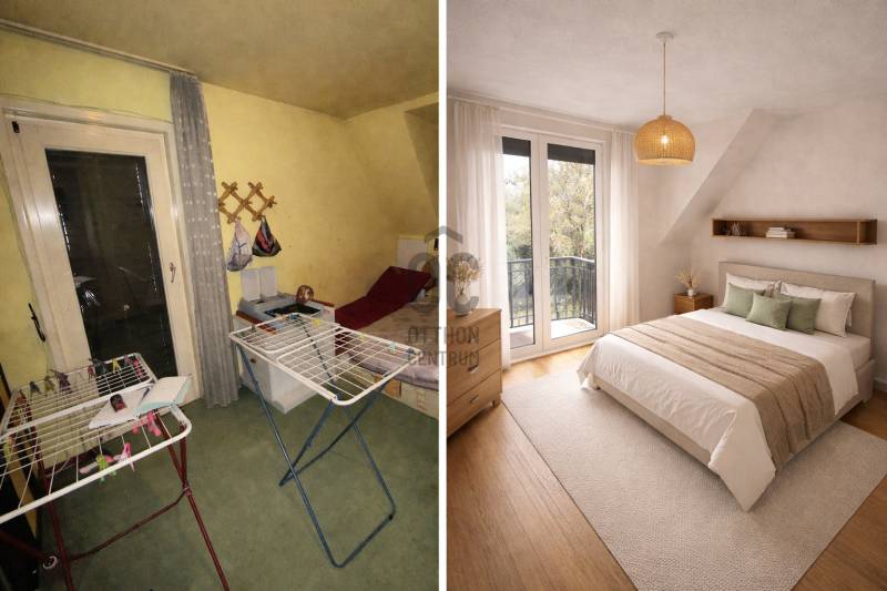 Gloriett telep a 18. kerület kifejezetten kedvelt része, köszönhetően a nagy erdős területnek a szomszédságában, és a barátságos lakókörnyezetének.A sorházi lakás amit eladásra kínálunk, egy csendes utcában található, kellemes zöld környezetben, SAROK telken, így az átlagos sorházi lakásnál jóval nagyobb területen, 150 m2-en fekszik. A ház kétszintes tetőtér beépítéses rendszerű.A földszinten található a konyha és mellékhelyiségek mellett a világos nappali. Ez egy teraszra, illetve egy a lakást körülölelő kertre nyílik, mely méretéből és elhelyezkedéséből adódóan kifejezetten jól használható akár nyári sütögetésre, vagy egy jacuzzi felállítására.. Az emeleten a fürdőszoba mellett három szoba kapott helyett, így akár családosoknak is jól használható.A kombi cirkó kazánt a tavalyi év folyamán kicserélték, és a ház külső szigetelése, majd színezése is megtörtént.Az 1995-ben épült sorházi lakás belülről már felújítandó, ennek előnye, hogy most még bármi megálmodható és alakítható, hogy újra egy gyönyörű otthonná váljon.A házhoz tartozik egy garázs is, mely közvetlen az ingatlan része, a vételár részét képezi !Iskola, óvoda, Spar, sétatávolságra található..Tömegközlekedés a környéken kiváló.Az ingatlant nem lakják, kulcsos, így egyeztetés után könnyen mutatható !