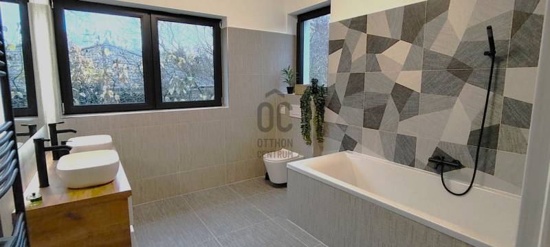 Fedezze fel ezt a kivételes lehetőséget Szentendre, Pismány városrészében, ahol egy új építésű, idén elkészült, modern ház várja Önt és családját.Az ingatlan a legmagasabb minőségi elvárásoknak megfelelően készült, közel 240 négyzetméteres alapterületén a nagyméretű világos nappalin, konyha-étkezőn, két fürdőszobán, mosókonyhán felül, 4 szoba és gardrób, plusz egy dolgozó sarok várja családjával.A nagyméretű, majdnem teljesen sík telken, ősfák és tudatosan telepített, gondozott örökzöldek, valamint a telek végében csordogáló patak adják a telek hangulatát. A békés, patakparti környezet, a madárcsicsergés, a friss levegő és a zöld panoráma, minden nap feltölti energiával, a tiszta, friss levegő sétára, futásra, túrázásra kerékpározásra csábítja.A ház tervezésekor, majd kivitelezése során a telek egyedi alaprajzának adottságait és meglévő növényzetének megóvása mellett az új növényzet telepítése is kiemelt szerepet kapott. Az újépítésű, Ytong falazatú, hőszivattyús fűtésrendszerrel ellátott épület, korszerű hőszigeteléssel, nyílászárókkal és energiatakarékos megoldásokkal biztosítja a kellemes klímát és az alacsony fenntartási költségeket egész évben. A zöldre néző nagy üvegfelületek beengedik a fényt, miközben a tágas, kertkapcsolatos nappali, a stílusos étkezővel és a nagyméretű terasszal a kényelmet és az eleganciát ötvözik.Több, mint 1000 négyzetméteres telkével ideális választás mindazok számára, akik a városi élet nyüzsgésétől távol, mégis könnyen megközelíthető helyen szeretnének élni. Az ingatlanban öt tágas szoba található, amelyek lehetőséget adnak a családi életre, valamint vendégek fogadására. A két fürdőszoba kényelmet biztosít a mindennapok során, így a reggeli rohanásban sem kell kompromisszumot kötnie. A közel 50 négyzetméteres terasz tökéletes helyszín a pihenésre, ahol élvezheti a gyönyörű panorámát, amely a környék varázsát tükrözi. Az újépítésű ingatlan a hőszivattyús fűtés és a klímaberendezés pedig garantálja a kellemes hőmérsékletet télen és nyáron egyaránt. A garázsban egy autó kényelmesen parkolhat, ezen felül a telken további két autó is elfér, így nem kell aggódnia a parkolási lehetőségek miatt.A környék csendes és biztonságos, ideális választás családok számára. Szentendre számos lehetőséget kínál a szabadidős tevékenységekre, legyen szó kirándulásokról, kerékpározásról vagy a helyi éttermek és kávézók felfedezéséről vagy kulturális élményekről, eseményekről. A közlekedési lehetőségek is kiválóak, hiszen a város könnyen megközelíthető autóval, de a tömegközlekedés is jól kiépített, így Szentendre és Budapest között gyorsan és kényelmesen közlekedhet. A családbarát ingatlan a természet nyugalmát és a városi kényelem közelségét kínálja, egyszerűen megközelíthető, csendes utcában, mégis percekre a városközponttól, óvodától, iskoláktól, üzletektől és tömegközlekedéstől.Ez az ingatlan nemcsak egy otthon, hanem egy életstílus megtestesítője, amely lehetőséget kínál az aktív, de mégis nyugodt életvitelre.