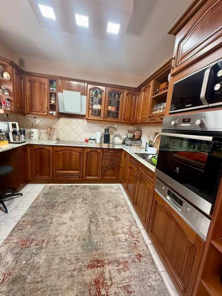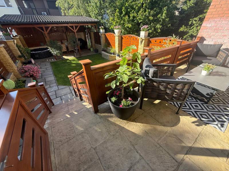 Debrecen egyik legkedveltebb, zöldövezeti részén, a Nagyerdő csendes kis utcájában eladó egy 174 nm-es, három szintes, teljes körűen felújított sorház, amely tökéletes választás családok számára.A földszinten a közös terek harmóniája található, egy modern, egybenyitott nappali - étkező - konyha kapott helyet, amely ideális szintere a mindennapi életnek és a családi összejöveteleknek. A konyha minőségi, korszerű gépekkel felszerelt, praktikus kialakítású.A nappali - étkezőből közvetlen kijárat nyílik a tágas teraszra, amely kellemes, nyugodt kapcsolatot teremt a gondozott kerttel.Az emeleten nyugodt pihenést biztosít a 3-om csendes, jól kihasználható szoba, hozzá tartozik egy stílusosan kialakított fürdőszoba.A tetőtérben egy hangulatos dolgozó és olvasósarok, valamint egy tágas szoba gardróbbal került kialakításra.Az ingatlan egyik különlegessége a szuterén szint, ahol megtalálható mosóhelyiség, tárolóhelyiség, itt kapott helyet egy infra szauna a mindennapi feltöltődéshez. A garázs elektromos kapuval ellátott, fűtött és két gépkocsi beállásra van lehetőség.Műszaki tartalma:- Teljeskörű felújítás- Megújult víz és villanyvezeték hálózat - 2 kamrás, 3 rétegű üvegezésű, fa hatású műanyag nyílászárók- Redőny és rovarháló minden ablakon- Riasztórendszer- 2 kw-os napelemrendszer- 5 db klíma a kellemes hőmérsékletért- 10 cm homlokzati szigetelésAz ingatlan kiváló választás azok számára, akik csendes, zöld környezetben, mégis Debrecen egyik legértékállóbb részén szeretnének élni.
