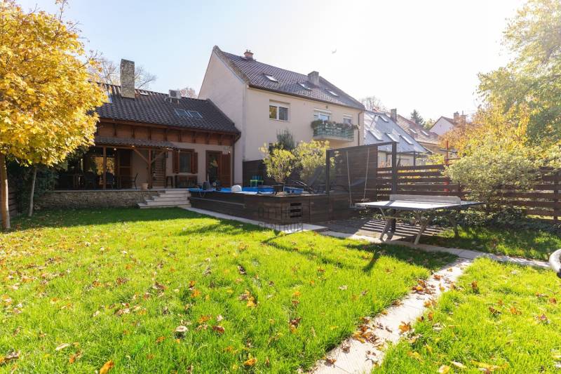 Fedezd fel álmaid otthonát Budapest XIV. kerületének csendes, de mégis pezsgő részén Zuglóban!Ez a felújított, kiváló állapotú, sorház jellegű, két szintes családi ház nem csupán egy ingatlan, hanem egy életstílus, amely ideális azok részére, akik értékelik a kényelmet és a természet közelségét.Nappali+ 5 tágas hálószobával rendelkezik, így bőséges teret biztosít a család számára, vagy akár baráti összejövetelekhez is. Két fürdőszobája garantálja, hogy reggelente senkinek sem kell várakoznia és emellett még vendég mosdó is megtalálható.A házhoz tartozik egy 403 négyzetméteres telek, amely rendezett kerttel rendelkezik. A füvesített kertben kiépített öntözőrendszer, 3x5 méteres hőszivattyúval fűthető medence, fedett sütögető rész és egy kis faház tárolónak is megtalálható.A 35 nm-es terasz tökéletes helyszín családi grillezésekhez vagy csak a napozáshoz.A prémium kivitelezés és a modern dizájn megjelenik a ház minden részletében. A kandallós nappali a téli estéken biztosítja a meghitt hangulatot. Az ingatlan fűtése gázkazán (viessmann) történik, radiátoros hőleadókkal, valamint padlófűtés is ki lett építve.Hűtése klímával, így a legforróbb nyári napokon is kellemes hőmérsékletet biztosít.A riasztó és kamera rendszer és a biztonságos környék nyugalmat ad a mindennapokhoz.Két autó számára udvari beálló áll rendelkezésre elektromos kapuval, biciklitárolóval.Fenntartása nagyon kedvező, köszönhető ez az 50 cm-es téglafalazatnak és a modern nyílászáróknak is.Az ingatlan tehermentes, így gyorsan birtokba vehető kifizetést követően.A környék kiemelkedő közlekedési lehetőségekkel rendelkezik: a kitűnő közlekedésnek köszönhetően gyorsan elérheted a belvárost. A csendes utcák és a barátságos szomszédság ideális környezetet biztosítanak az ideköltözők számára, akik szeretnék élvezni a városi élet előnyeit, miközben a természet lágy ölén pihenhetnek. Ne habozz, ha egy exkluzív, modern és családbarát otthont keresel, ami minden igényt kielégít!Várom megkeresésedet hétköznap és hétvégén is!Ez az ingatlan a \"Felező csomag\" megbízási portfólióhoz tartozik. Részletek az Otthon Centrum weboldalán.