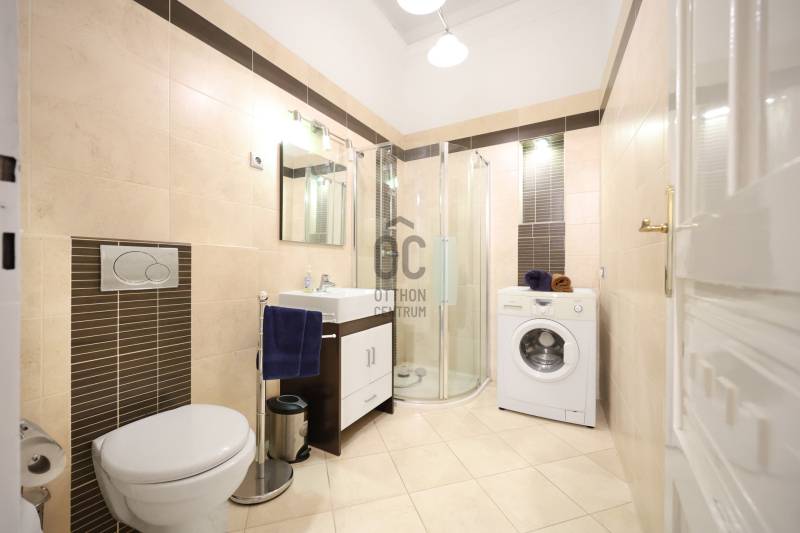 Polgári Elegancia a Falk Miksa utcábanEladó az V. kerület legimpozánsabb részén, a galériák utcájában egy teljes körűen felújított, 53 m²-es, nappali + hálószobás exkluzív ingatlan. Az épület kívül-belül kifogástalan állapotú, liftes ház, melynek lépcsőháza és közös területei két éve teljes esztétikai és műszaki megújuláson estek át.Fény és Tájolás:A lakás kivételes adottsága az átmenő napfény, amely élettel telivé teszi a tereket:Keleti tájolású nappali: Reggelente természetes fényben úszik.Nyugati fekvésű hálószoba: Csendes pihenést és kellemes délutáni világosságot biztosít.Műszaki tartalom és felszereltség:Teljes körű megújulás: A felújítás során a teljes villamos hálózat cseréje megtörtént,megfelelve a legmodernebb technikai elvárásoknak.Maximális komfort: A legmodernebb, láthatatlan mennyezeti hűtés-fűtést Daikin hőszivattyús rendszer rendszer biztosítja alakás optimális hőmérsékletét. Geotarifás mérő óra van felszerelve a kedvező tarifáért.Szigetelés és biztonság: Új, Hofstadter 3 rétegű üvegezéssel ellátott nyílászárók a tökéletes csendért, részben motoros redőnyvalamint prémium 6 pontos biztonsági bejárati ajtó.Álomkonyha: Olaszországból érkezett, egyedi tervezésű konyhabútor,beépített Siemens gépekkel és Liebherr hűtővel.Fűrdőszoba:A mediterán fürő minőségi Hüppe zuhanykabinnal és Hansgrohe csaptelepekkel lett ellátva.A társasház és a tárolás részletei:Saját tároló: Az ingatlanhoz tartozik egy saját pinceszinti tároló. Fontos kiemelni, hogy atársasház felújítása során a pinceszint is teljes műszaki megújuláson esett át, így az tisztaés rendezett állapotú.Gondozott udvar: A lakók nyugalmát egy hangulatos szökőkút és térkővel burkolt,tiszta és esztétikus belső udvar biztosítja, ahol biztonságos kerékpártároló is rendelkezésre áll.Lokáció és Életérzés:A lakás elhelyezkedése kiváló: a Parlament, a Duna-part és a kikapcsolódást nyújtó Margit-sziget is kényelmes sétatávolságra található. Ez az ingatlan kompromisszummentes életteret kínálBudapest szívében, egy patinás, galériákkal övezett, biztonságos környezetben