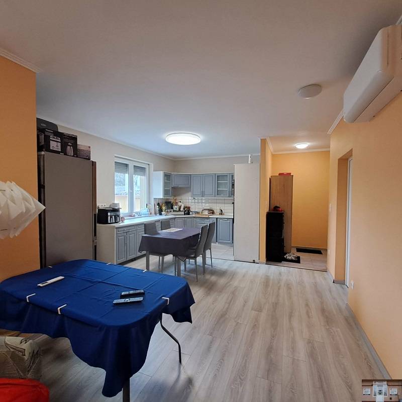 KIZÁRÓLAG A JUDIT INGATLAN-, ÉS HITELIRODA KÍNÁLATÁBAN!Monoron, központtól nem messze teljesen felújított 92,53 m2-es társasházi lakás 294 m2-es telekkel eladó.A telken 2019-ben 4 lakásos (2×2) társasház került kialakításra, ez az ingatlan az 1. lakás, mely a ’70-es években épült masszív betonalapra rakott sárfalból. 2019-ben teljeskörű felújításon esett át (szigetelt aljzatbeton, teljesen új tetőszerkezet, minden vezeték, burkolat, valamint a nyílászárók cserélve lettek,…).Közös kocsibehajtóról tud mindenki a saját, lekerített telkére beállni. Az ingatlanhoz tartozó saját telken fedett kocsibeálló, és egy tároló található.Minden lakás saját mérőórákkal rendelkezik (gáz, víz, villany, csatorna).A ház lakóterülete 92,53 m2, melyben előszoba, nappali-konyha-étkező, kamra, 3 szoba, fürdőszoba, és WC található.A lakás fűtését és melegvíz ellátását kondenzációs gázcirkó biztosítja, valamint inverteres klíma is fel lett szerelve.A konyhabútor gépekkel az ár részét képezi (mosogatógép, főzőlap, sütő, mikró).AZ ÁR FIX, NEM ALKUKÉPES!!!DÍJMENTES HITELÜGYINTÉZÉS IRODÁNKBAN!!!OTTHON START HITEL, CSOK+, BABAVÁRÓ KÖLCSÖN, KAMATTÁMOGATOTT LAKÁSHITELEK, ….2003 ÓTA AZ ÖNÖK BIZALMÁBAN!