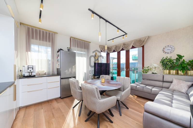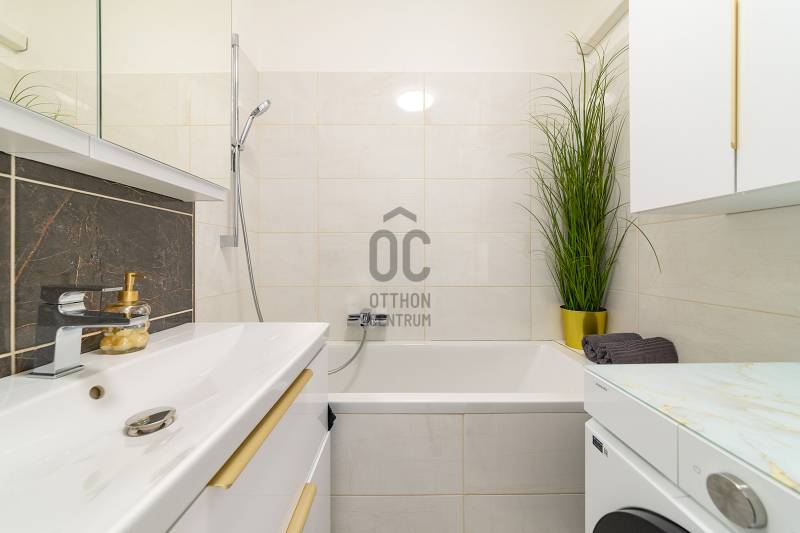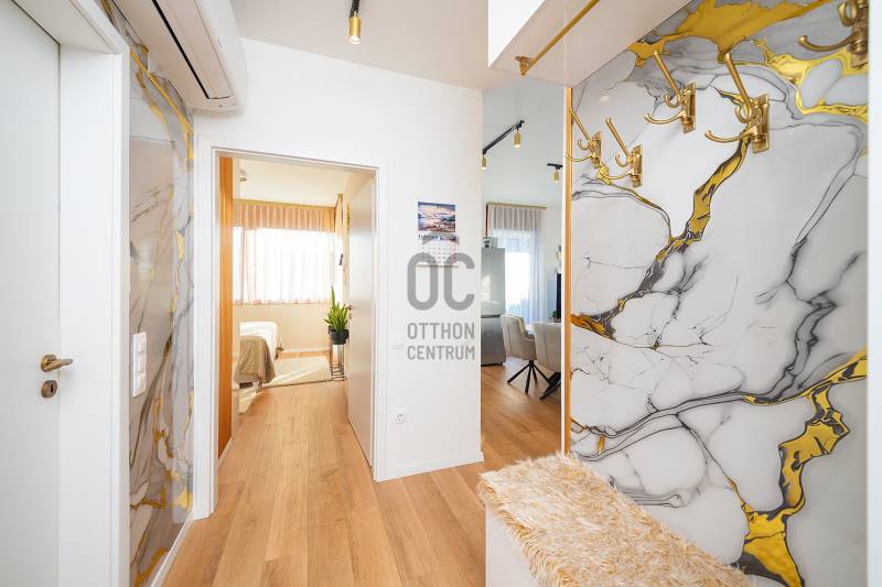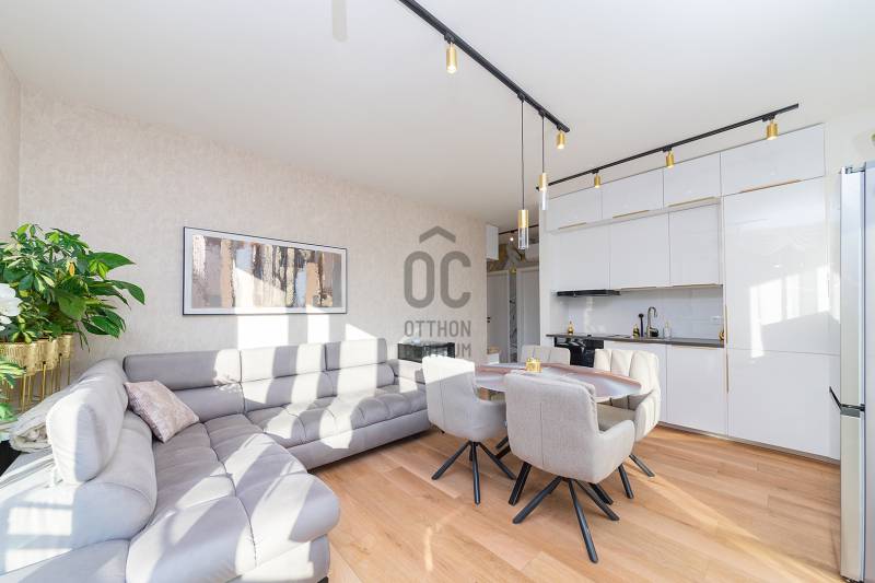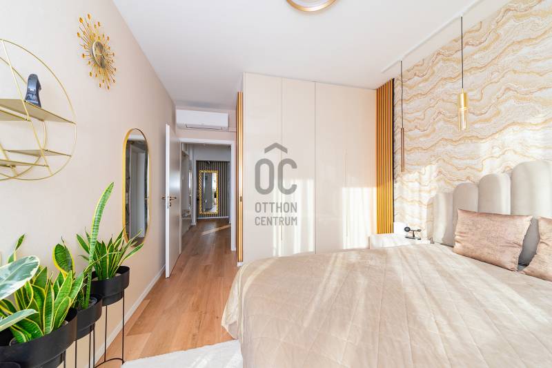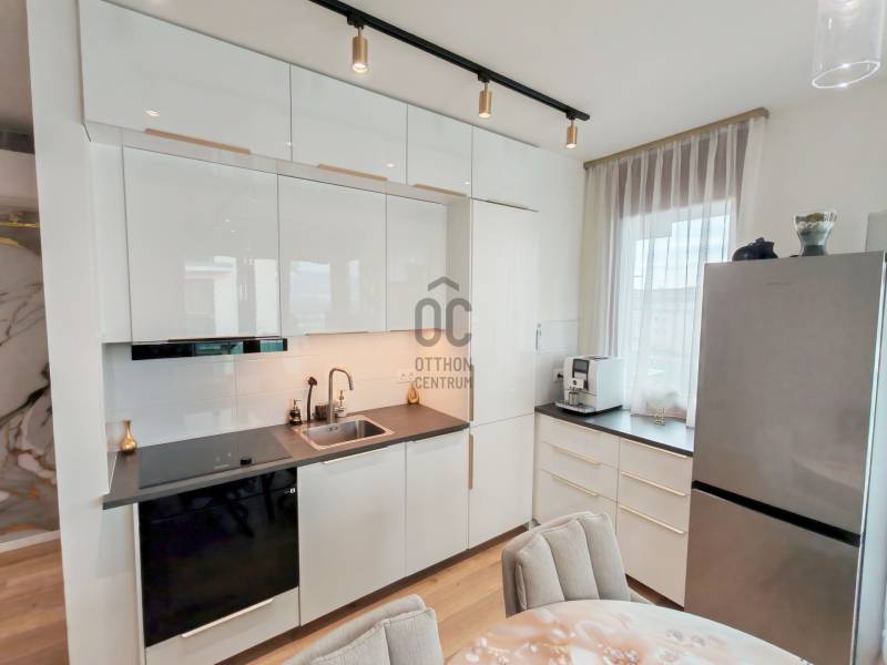 3 szobás exkluzív otthon a Marina partonRendkívül igényes minőségű és kivitelezésű, nappali + 2 hálószobás otthon eladó, 61 m2 + 14 m2 terasz elosztással.A Marina part II-es ütemében épült társasház 8. emeletén található a lakás, a Dunára és az újpesti öbölre is részpanorámával bír.Kerti nézetű, DNY-i tájolású.A lakás 2025 őszén fel lett újítva, minek keretében a új konyhabútort és fürdőszoba bútort kapott. Egyedi okosotthon vezérlés a lakásban, nagyszámú szabályozási lehetőséggel.LAKÁS:Nappali: minőségi bútorok, Samos TV-hifi rendszerKonyha: WiFi-s megoldások, Flex Zónás főzőlap, gőzsütő, borhűtő...Nyílászárók: fa nyílászárók, elektromos rolós rendszerrel kiegészítve, szúnyoghálókkalFürdőszoba: mosó-szárítógép, kád és sok tároló szekrény Fényerőszabályzós világítási rendszer, számos új beépített szekrény.Fűtési rendszer: házközponti fűtés és fűtés. Itt 3 db Daikin professzionális klíma is beépítésre került, egyedi szűrőrendszerrel.Terasz: élhető méretű 14 m2-es, műfűvel ellátva a nagyobb komfort érdekébenTeremgarázshely: a lakáshoz 2 teremgarázshely tartozik (+8.35 M Ft/db áron).LOKÁCIÓ: a Dunától 1 perc sétára található, remek közlekedési, sportolási és kikapcsolódási lehetőségekkel Budapest egyik legkedveltebb kerületébenTÁRSASHÁZ: gondozott kerttel, 0-24 órás portaszolgálattal rendelkezik. 2 lift növeli tovább a kényelmet.Tehermentes ingatlan, rugalmas birtokbaadási lehetőséggel.Az ingatlan ára a komplett bútorozást is tartalmazza.Kérdéseivel kérem keressen bizalommal !
