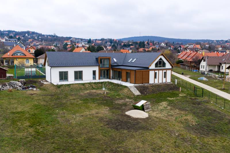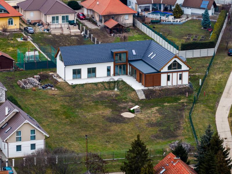 Igazi különlegesség: luxuskivitelű új, önálló épület a Velencei-hegység lábánál.„Magunknak építettük”Eladó Sukorón egy grandiózus méretű és megjelenésű önálló ház, mely családi fészeknek vagy üzleti célú képviseletnek, bemutatóteremnek is ideális. Az építkezés most ért el a legszebb részéhez: a burkolatok és a beépített bútorok még hátra vannak, és a tervek szerint innentől az új tulajdonos folytatja. Nyertünk Önnek két évet. És mindezt korszerű, energiahatékony megoldásokkal, továbbfejlesztési lehetőségekkel, hogy a modern állapot évtizedekig fennállhasson.Válassza meg Ön az épület funkcióját a saját céljai szerint, hogy álmait megvalósíthassa:- rendezvényhelyszín- bemutatóterem, cégképviselet- panzió, magánóvoda vagy képzési központ- művészeti alkotóházA lokáció jellemzői:-csendes, családi házas környék-jó közlekedés: autópálya felhajtó 3 ill. 5 km-szabadidős- és kulturális programok a térségben-kirándulóhelyek, sportlehetőségek a kapun kilépveTérbeosztás a földszinten, összesen 260 nm:- nappali – konyha – étkező 83 nm (open space)- master bedroom és fürdőszoba 34 + 13 nm- lakószoba 22 nm- családi fürdőszoba előkészítés 13 nm- télikert 20 nm- háztartási helyiség 8 nm- vendég fürdőszoba pisoárral 6 nm- előszoba, közlekedők össz. 36 nm- gépészet, raktár 17 nm- lépcsőtér 8 nmAz emeleten, összesen 104:- szoba 1- szoba 2- fürdőszoba előkészítés- közlekedő és gépészet- szabadon alakítható, nyitott tér (open space)A ház jellemzői számokban:- földszinti lakótér (első ütem) nettó 260 nm – használatbavételi engedéllyel rendelkezik (2026. október 16.)- az emeleti / tetőtéri (második ütem) 104 nm- összesen 364 nm- telekterület: 2765 nm- beépíthetőség: max. 30% (jelenleg 11,89%)- maximális építménymagasság: 4,50 m (a jelenlegi épület 4,49 m magas)- minimális zöldfelület: 40%, jelenlegi: 78,03%- saroktelek, 2 utca felőli megközelítésMűszaki jellemzők:- Porotherm 38 N+F tégla falazat- belső válaszfalak: vázkerámia falazóelem- hőszivattyús fűtés és hűtés- padlófűtés és mennyezethűtés mindkét szinten- hőszigetelő, hőhídmentes, 3 rétegű üvegezésű műanyag külső nyílászárók kívül világos bronz, belül tölgy fóliával ellátva- zsaluzia- külső faburkolat: Thermowood fenyő C65 Triple-Bever Profilból, 28 mm vastagságban, kiszellőztetést engedő párnafára szerelve, rovarhálóval lezárva, felületkezelése Remmers HK-Lasur 3in1 oldószerbázis favédő lazúrral- nyeregtető 40°-os dőlésszöggel, a héjazat Tondach Inspira sötétszürke, egyenesvágású cserépfedés- az íves és az alacsony hajlásszögű tetőrészeken Prefa korcolt alumínium lemezfedés Prefa 19 grafitszürke színben Dörken Delta Alpina alátétszigeteléssel- hőszigetelés a külső téglafalakon 16 cm EPS 80 homlokzati hőszigetelés, a lábazaton 16 cm XPS 30 cm magasságig felvezetve- hőszigetelés a padló szerkezetben (a földszinten) 20 cm (5+15 cm) EPS 100Ingatlan eladásban vagy a finanszírozás megtervezésében is készséggel állunk rendelkezésére.luxuskivitel, duplex, open space, energiahatékony, zsaluzia, egyediEz az ingatlan a \"Felező csomag\" megbízási portfólióhoz tartozik. Részletek az Otthon Centrum weboldalán.