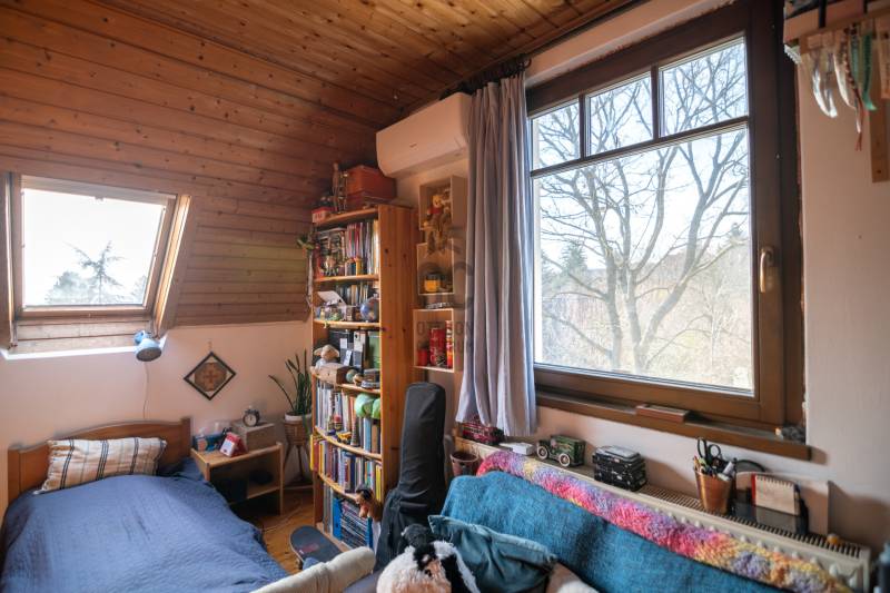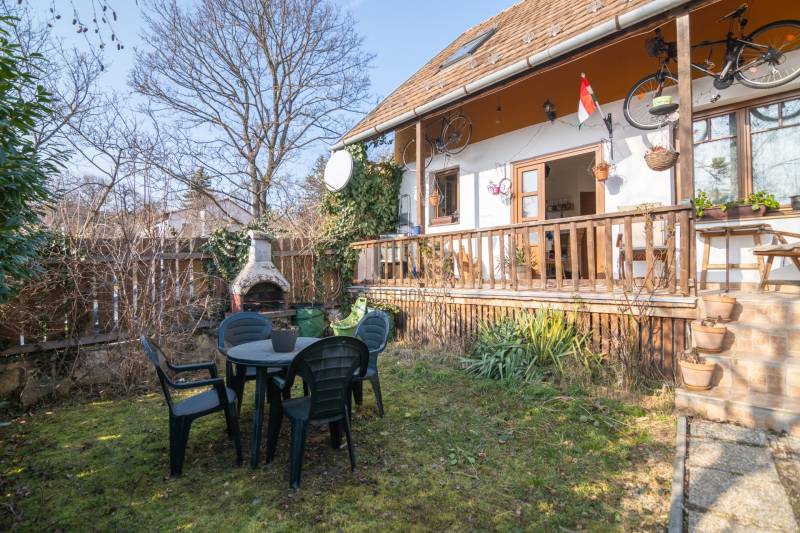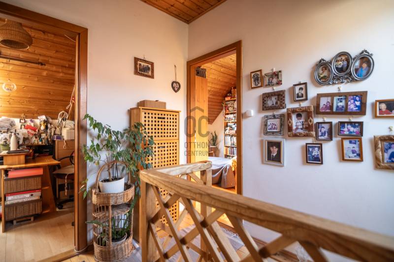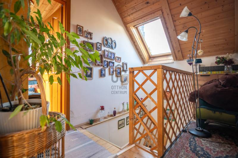 Eladásra kínáljuk gondosan karbantartott, kétszintes, sorház jellegű családi házat Budakeszi egyik legszebb és legkeresettebb részén, Virágvölgy csendes utcájában, a 12. kerület határán, közvetlenül az erdő szomszédságában.Az ingatlan a város északkeleti határán, a hajdani villa-üdülő övezetben, kiemelt presztízsű környezetben, a János-hegy közvetlen közelében helyezkedik el – ideális választás azok számára, akik a természet közelségét és a városi elérhetőséget egyaránt fontosnak tartják.Főbb paraméterekLakóterület: 95 m²Elrendezés: nappali + 3 külön nyíló szobaÉpület: 2 szintes, sorház jellegű (nincs közös fala a szomszéd ingatlannal)Földszint:előszobavilágos nappali valódi fatüzelésű kandallóvalkonyha - étkezőkádas fürdőszoba - wcteraszTetőtér:2 hálószoba (egyik hűtő-fűtő klímával)félszoba+ padlás tárolásraMűszaki és állapotAz ingatlan néhány éve belső felújításon esett átEgyedi fa nyílászárók, 3 kamrás üvegezésselBiztonsági zárral ellátott bejárati ajtóTetőtéri ablakok működőképesek, esztétikai felújítást igényelnekTisztasági festés után beköltözhetőKert és telekIntim, körbe kerített saját kert, ideális pihenésreOsztatlan közös tulajdonú telek, ügyvédi megosztássalKözművek – fontos információA vízvezeték-rendszer 2025 nyarán részben szétválasztásra kerültA külön csövek már lefektetésre kerültek, bekötésük és az önálló vízórák telepítése szükséges a teljes leváláshozJelenleg egy új közös gerincen történik az ellátásElhelyezkedés és közlekedésRendezett, aszfaltozott utcában, a városközponthoz közel.Parkolás a telken belül. Tömegközlekedés: Budapest–Budakeszi határán, kiváló elérhetőség:22, 22A, 222, 188, 188E és távolsági buszok 6-7 perc sétaSzéll Kálmán tér kb. 20 perc alatt elérhetőBevásárlás, gyógyszertár, orvos, éttermek ~5 perc sétára