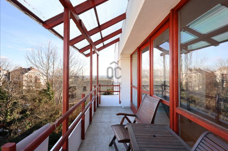 A Gellérthegy zöldövezeti, fás utcájában, a Citadella közvetlen közelében kínálunk megvételre egy legfelső emeleti, világos, kiváló adottságú lakást egy nemrég felújított, kétszintes épületben.Az ingatlan különlegessége az elhelyezkedéséből fakadó nyugalom és a város közelségének ritka egyensúlya. A természetközeli környezet és a budai panoráma egy olyan életteret teremt, amely egyszerre inspiráló és pihentető.Az előszobából valamennyi helyiség kényelmesen elérhető. A nagy ablakfelületekkel rendelkező nappali egész nap természetes fényt kap, amely az amerikai konyhás kialakítással együtt tágas, harmonikus életteret biztosít. A nappali és a hálószoba között elhelyezett fatüzelésű kandalló elegáns fókuszpontként működik, miközben mindkét helyiséget kellemes meleggel tölti meg a hűvösebb hónapokban. A nyári komfortot légkondicionáló garantálja.Az erkély részben panorámás kilátást nyújt, részben egy csendes, zöld zsákutcára tekint — ideális helyszín reggeli kávéhoz vagy egy hosszú nap utáni nyugodt esti pillanatokhoz.A társasház rendezett és folyamatosan karbantartott. Az ingatlan elhelyezkedése és felszereltsége alapján egyaránt alkalmas exkluzív saját otthonnak vagy értékálló befektetésnek.Ez a lakás nem csupán lakóhely, hanem egy kifinomult budai élettér, ahol a panoráma, a kandalló melege és a zöld környezet együtt adják meg az otthon valódi karakterét.