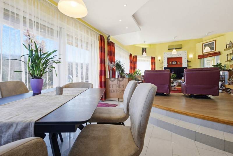 Megvételre kínálok egy csodálatos, panorámás, 2002-ban épült családi házat , csendes utcában, Szombathely mellett SÉ-ben .TELEK: -1100m2 - panorámás - saroktelek- parkosított- örökzöldek körben - rendezett-gondozott- öntözőberendezés kiépítve - körbe kerített- díszburkolat a garázs és a ház közöttCSALÁDIHÁZ:-2002-ben épült egyedi elképzelés alapján, belső építész segítségével- igényes, élhető, tágas terek jellemzik az egész házat - DK-i fekvésű- családi ház három szinten 380nm - amerikai konyhás nappali + 5 szobából áll ( ebből az egyik jelenleg irodának van használva ) - 2 fürdőszoba- külön vendég WC- gardróbszoba- háztartási helyiség- tágas előszoba- beépített padlás- 2db autóbeálló a garázsban, a garázs előtt még egy autónak beállási lehetőség biztosított- elektromos kapu- parkosított udvar- részben fedett terasz (45m2, térkövezett)- jó minőségű konyhabútor (beépített gépekkel)- padlófűtés + radiátoros fűtés- nappaliban kandalló- a házban több fűtési lehetőség: elektromos kazánnal és gáz cirkóval megoldott- hűtő- fűtő klíma a nappaliban- emeleten 2 db hűtő klíma lett beszerelve - megújuló energia: napelem 10KWp- tetőtéri ablakok Velux márkájúak- nyílászárók műanyagok, teraszajtó tolóajtós- nappaliban a teraszon elektromos redőny,- szobákban reluxa- tégla építésű - 10 cm homlokzat szigetelés- terasz alatt tároló lett kialakítva a kerti szerszámoknak, a kertben lévő nyári bútoroknak - USZODA szaunával - medence mélysége 140-150cm, víz forgatóval, ellenáramoltatóval, víz melegítéssel - medencén takarófólia - medence tér világos, körbe ablakokkal, szalagfüggönnyel.- Az ablakok kialakítása szellőztetővel megoldott- kertkapcsolatos SÉ településen óvoda Iskola Szombathelyen és Torony településenKERÉKPÁR ÚT Szombathelyig kiépítve, természetközeli, zöld környezetben KB 10 PERC TÁVOLSÁGBANSport létesítmények, fedett teniszpálya, uszoda, csónakázó tó 8-10 perces távolságban.Ausztriai kishatár ( Bucsu) kb. 8 km-re
