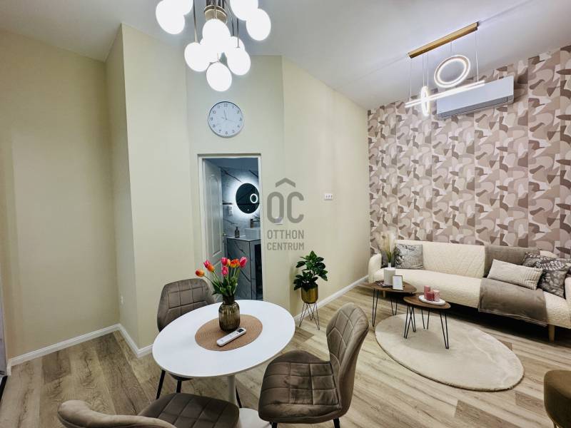 Ritka lehetőség Budapest szívében – felújított polgári lakás a Klauzál térenEladó Budapest VII. kerületében, Belső-Erzsébetváros egyik legkedveltebb részén, a Klauzál téren egy 40 m²-es (tulajdoni lapon 36 m²), teljes körűen és igényesen felújított, dél-nyugati tájolású, világos polgári lakás.Az ingatlan egy kulturált, szépen karbantartott társasház első emeletén található, önálló helyrajzi számmal rendelkezik, azonnal birtokba vehető.A lakás amerikai konyhás nappalival, külön hálószobával és fürdőszobával rendelkezik. Az elrendezés praktikus, élhető tereket biztosít. A felújítás során minden burkolat cserélve lett, a víz- és villanyvezetékek megújultak, az aljzat födémig visszabontásra került és új betonréteget kapott. A modern, fiatalos esztétikai kialakítás időtálló, mégis karakteres hangulatot teremt.A lakás egész délelőtt természetes fényben fürdik a dél-nyugati tájolásnak köszönhetően. A fűtésről hűtő-fűtő klíma és energiatakarékos elektromos fűtőpanel gondoskodik. A közös költség 16.200 Ft, amely korlátlan vízfogyasztást tartalmaz.A konyha modern, minőségi gépekkel felszerelt – ide valóban csak költözni kell.A társasház rendezett, megtakarítással rendelkezik, a tető nemrég felújításra került. Az udvar növényesítése önkormányzati pályázat keretében valósult meg, ami tovább emeli az épület színvonalát.Elhelyezkedése kiemelkedő: a Klauzál tér éttermei, kávézói közvetlen közelben találhatók, miközben a lakás nyugodt környezetet biztosít. A Blaha Lujza tér és az Erzsébet körút pár perc sétára elérhető, így a város bármely pontja gyorsan megközelíthető.Ideális választás első lakásnak, fiatal párnak vagy értékálló befektetésnek. Frekventált elhelyezkedése miatt könnyen és gyorsan kiadható.Az ingatlan önálló helyrajzi számmal rendelkezik, azonnal birtokba vehető.Igény esetén videót is tudok küldeni.Egyedi igényekre szabott lakáshitelekkel állunk rendelkezésére.Bankfüggetlen Hitelcentrumunk az országban elérhető összes bank és hitelintézet ajánlatát versenyezteti az Ön számára díjmentesen.Munkatársaink nagy szakmai tapasztalattal, teljes körű CSOK PLUSZ és OTTHON START PROGRAM ügyintézéssel várják Önt előre egyeztetett időpontban akár a normál munkaidő után is.