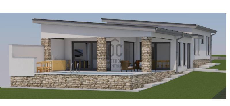 Zsákutca végén, erdőszéli, részben panorámás, nyugodt környezetben kínálunk eladásra egy modern, minimál stílusú, földszintes családi házat, különálló dupla garázzsal és opcionális medencével.Főbb adatok:✅ Lakóház hasznos alapterülete: 128 m²✅ Fedett terasz: 42 m²✅ Különálló, 2 állásos tégla garázs: 30 m²(igény szerint önálló lakrésszé vagy vendégházzá alakítható)✅ Telekterület: 738 m²✅ Medence: 8 × 3,5 m, közvetlen teraszkapcsolattal (gépészettel)Elrendezés:✅ Tágas, napfényes amerikai konyhás nappali terasz- és medencekapcsolattal✅ 3 kényelmes méretű hálószoba✅ Master bedroom (16,8 m²) saját 10 m²-es fürdővel és gardróbbal✅ További fürdőszoba✅ Kamra✅ 2db Gardrób szoba ✅ Háztartási helyiség gépészettelKültéri élmények:✅ Fedett teraszon épített grillező / sütögető rész✅ Tervezett nyári konyha blokk és kültéri zuhany✅ Egységes színvilágú térkövezés a ház körülMűszaki tartalom – minőség kompromisszumok nélkül:✅ 30 cm Porotherm tégla falazat + 15 cm homlokzati szigetelés✅ Vasbeton födém 30 cm szigeteléssel✅ 8 kW-os hőszivattyús fűtés, H tarifával✅ Padlófűtés minden helyiségben✅ Korcolt lemezfedésű tető (4szer annyi az élettartama, mint egy cseréptetőnek)✅ 3 rétegű, 5 légkamrás minőségi nyílászárók✅ Elektromos redőnyök minden ablakon✅ Riasztó előkészítve✅ Klíma (1 db)✅ Prémium burkolatok (8 000 Ft/m²), minőségi beltéri ajtók✅ 5 ponton záródó bejárati ajtóAz építkezés szerkezetkész állapotban van, már most bejárható, minden dokumentáció rendelkezésre áll.Ár: 149.000.000 FtMedence + önálló garázs kötelezően megvásárolandó: +15.000.000 Ft✅ CSOK Plusz és 3% OSP kompatibilis✅ Iskola, óvoda, bevásárlás a közelben✅ M7 autópálya pár percen belül elérhető✅ Buszjáratok Kelenföld és Pusztazámor közöttVárható átadás: 2026 nyár – őszTovábbi információért és megtekintésért hívjon bizalommal!
