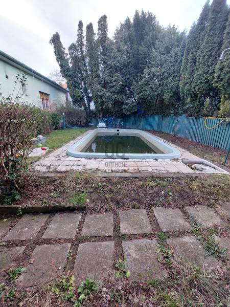 Eladó a XXII. kerületében, Rózsavölgyben egy 114 nm hasznos lakótérrel rendelkező önálló családi ház 1149 nm-es telekkel! A XXII. kerület kedvelt, kertvárosi részén eladó egy 114 nm-es lakótérrel rendelkező, K-NY-i tájolású, teljesen felújítandó állapotú, önűlló családi ház!A tégla falazatú, 1972-ben épült szabadon álló épület földszint + emelet kialakítású, bitumenes zsindely lapostetővel fedett. Az 1149 m² nagyságú telken egy lakóépület található, az épület hátsó telekrészén van egy beépített úszómedence.Az ingatlan összesen 228 m² alapterületű. A teljes földszintje garázsként szolgál, mely kb. 114 m², az emeleten pedig egy szintén 114 nm-es lakórész található.A lakásszinten összesen 4 szoba, 1 konyha, 1 fürdőszoba WC-vel, egy különálló WC, kamra, és egy üvegezett terasz található, valamint a szobák előtt erkély húzódik, mely két szóbából közelíthető meg.A tágas tereknek köszönhetően a felújítás során egy amerikai konyhás nappali és három háló is kialakítható. A lakásban jelenleg ázás nyomai látahatók, mely a fürdőszoba és a tetőszerkezet felújításával megszüntethető. Statikailag jó az ingatlan.A lakóépület mögött elterülő kert rendezésre szorul. A ház előtti előkertben, a hat állásos garázson kívül további autók parkoltatására is van lehetőség. A ház elhelyezkedése a tömegközlekedés szempontjából kitűnő, megközelíteni aszfaltozott útról lehet. Buszmegálló 30 m-re, villamos megálló 350 m-re van. A Savoya park 2,4 km-re található, iskolák 3 km távolságon belül elérhetőek.Az ingatlan megtekintése előre egyeztetett időpontban lehetséges.Amennyiben fontos Önnek ingatlana kitűnő elhelyezkedése, szereti a kertvárosi hangulatot, de fontos a jó közlekedési lehetőség és infrastruktúra, szeretné maga megálmodni 114 nm-en otthonát, akkor itt mindezt egyben megtalálja!Megtekintéssel kapcsolatban várom hívását!