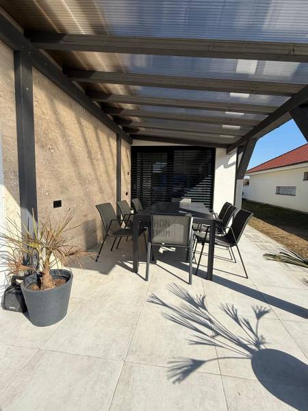 English and Hungarian speaking Estate AgentDebrecentől néhány percre, Pallag új osztású részén eladó egy nappali-amerikai konyha + 3 külön nyíló szobás, 2025-ben épült, igényes, önálló családi ház, bútorzattal együtt, 721 m2-es telken az alábbi tulajdonságokkal:* Porotherm 30 falazóblokk + 15 cm hőszigetelés* Marshall 3 rétegű fém+műanyag nyílászárók* Okos otthon - telefonról szabályozható a hűtés-fűtés * Kamerarendszer* Kinti-benti ledek* Távirányítható zsaluzia* Központi szellőztető rendszer* Lágyvizes rendszer* Légcsatornás klíma* H-tarifa* Midea 10 kw-s hőszivattyú* Festett, gépesített, teljesen új Cliff konyhabútor* Rejtett kamra* Látvány kandalló* Elektromos úszókapuAz ingatlan hatalmas nappali-konyha-étkezővel bír, kiváló lehetőség nagyobb társaságok, családi rendezvények lebonyolítására. Az épület modern gépészeti megoldásokkal került megépítésre. Teljesen újszerű, modern, igényes otthon, csak be kell költözni.Az ingatlan vételára tartalmazza a képeken szereplő bútorzat árát is, igény szerint.További információval, megtekintéssel kapcsolatban várom hívását a hét minden napján!újszerű, Pallag, önálló ház, igényes, modern, egyszintes, magas műszaki tartalom, egy éves