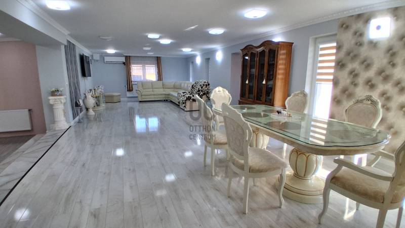 Prémium minőségű, 2025-ben épült családi otthon!Derecske kedvelt városrészén egy tágas életteret és azonnali üzleti lehetőséget kínáló modern családi ház várja új lakóit!Érdemes megtekinteni!Paraméterek:- 176 m² lakóház + 30 m² fedett terasz- a jelenlegi 3 szoba akár 5 szobává is alakítható, melyhez minden feltétel adott- Két külön lakóegység – ideális többgenerációs együttéléshez vagy bérbeadásra- Különálló, 30 m²-es üzlethelyiség, forgalmas út mellett – kiváló vállalkozási lehetőség- 1098 m²-es, rendezett telek, részben térkövezett udvarral- 2025-ben befejezett, újszerű állapot, modern műszaki megoldásokkal- Lakóház elrendezése:Tágas, világos 58 m²-es nappali–konyha–étkezőKényelmes hálószobaModern fürdőszoba és előszobaKülön bejáratú lakóegység: szoba–konyha egy légtérben, saját zuhanyzós WC-vel- Építés módozata:Az ingatlan egy stabil, hagyományos épület falain alapulva, teljes körűen kibővítve és modernizálva készült el. A ház összhatása teljes mértékben új építésű érzetet nyújt – minden burkolat, gépészet és műszaki megoldás korszerű.Komfort:- Vegyes tüzelésű kazán-padlófűtés és radiátor hőleadókkal _ gázcsonk az udvarban, az épületben is kialakítva a rákötéshez- 4 db klíma a kellemes hőmérsékletért egész évben- Laminált padló és igényes kerámia burkolatokAmennyiben a paraméterek megfelelnek Önnek, s ha egy modern, azonnal költözhető otthont keres, ahol fontos a tágas tér és a minőség, valamint vállalkozást indítana otthonról, vagy befektetési lehetőséget keres, állok rendelkezésére az ingatlan esetében!Részletekről és a megtekintésről érdeklődjön, várom megkeresését!Hajdú-Bihar, Derecske, ház, használt, eladó, 3-5 szoba, dupla komfort, újszerű