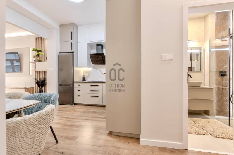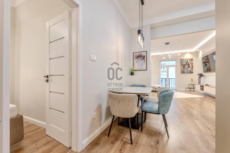 Újlipótvárosi Ékszerdoboz: Luxus Kényelem, Berendezve, Kiváló Lokációban – 129,9 M FtLokáció: Budapest XIII. kerület, Újlipótváros, Tátra utca, Méret: 55 m² Szobák: 2, 3.em (amerikai konyhás nappali + hálószoba) Ár: 129,9 M FtKöltözzön Be Azonnal! (Rövid Összefoglaló és Kiemelt Előnyök)Ne keressen tovább! Ez az 54 nm-es, 2 szobás lakás Újlipótváros szívében, a Tátra utcában a prémium minőséget és a kényelmet jelenti. A frissen, magas minőségben felújított és berendezett ingatlan ideális választás mindazoknak, akik azonnal élvezni szeretnék a modern belvárosi életérzést, vagy egy értékálló, könnyen kiadható befektetést keresnek. A tágas terek, a nagy belmagasság és az okos funkciók teszik ezt a lakást valódi otthonná.A Helyszín: Újlipótváros – A Stílusos BelvárosBudapest XIII. kerületének ezen része a legfelkapottabb és legkedveltebb környékek közé tartozik. Újlipótváros a polgári elegancia és a modern, pezsgő életstílus tökéletes egyensúlyát kínálja. A Tátra utca csendesebb, de frekventált elhelyezkedése biztosítja, hogy minden szolgáltatás karnyújtásnyira legyen.Infrastruktúra és Közlekedés:Kiváló ellátottság: Számos kiváló étterem, hangulatos kávézó, minőségi bolt és szolgáltatás érhető el sétatávolságra.Tökéletes közlekedési csomópontok közelsége: A nagyszerű tömegközlekedési kapcsolatok (villamos, busz, metró) révén a város bármely pontja gyorsan elérhető, ami az aktív életet élők és a bérlők számára is kiemelkedő előny.A Lakás: Tágas, Stílusos és FunkcionálisA lakás teljes felújítása során a funkcionalitás és a modern minimalista design volt a fő szempont.Tágas és Világos Terek: A 55 nm-en két külön szoba (amerikai konyhás nappali + hálószoba) kapott helyet. A nagy belmagasság és a gondos tervezés optikailag tovább növeli a terek érzetét. A lakás mellett egy másik külön bejáratú és külön hrsz-n lévő 25m2 felújított lakás is elérhető 67M áron, amennyiben valaki két lakást keres egymás mellett vagy szeretne összenyitni és egy 80m2-s 3 szobás lakást szeretne, akkor meg van a lehetőség rá! Bővebb információk személyesen!Prémium Kialakítás: Az amerikai konyhás nappali a modern életérzést tükrözi prémium kivitelezéssel és eleganciával.Beépített Kényelem: A vételár tartalmazza a beépített szekrényeket és bútorokat, és a teljes berendezést!Korszerű Megoldások: Az integrált motoros redőnyök és szúnyoghálók, a biztonsági ajtó és riasztórendszer gondoskodnak a nyugalomról és a kényelemről.Kedvező Fenntartás: A távfűtés egyedi méréssel rendkívül gazdaságos fenntartási költségeket tesz lehetővé.Pénzügyi Rugalmasság: A vételár a berendezéseket és beépített szekrényeket tartalmazza!Ne Hagyja Ki a Lehetőséget!Ez a lakás tökéletes megoldás azoknak, akik kompromisszumok nélkül akarnak belvárosi luxust vásárolni, vagy kiváló ár-érték arányú befektetést keresnek egy mindig felkapott kerületben. Az akadálymentesített bejárat további értéket képvisel.Ragadja meg ezt a ritka alkalmat! Kérem hívjon még ma, hogy ne maradjon le erről a kész otthonról! Várjuk hívását egy személyes megtekintés egyeztetésére!