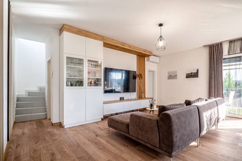 Biatorbágy egyik legdinamikusabban fejlődő, új építésű részén kínálunk megvételre egy 2020-ban épült, modern kialakítású, belső kétszintes lakást, amely ideális választás családok számára, akik egy kényelmes, energiatakarékos és jól átgondolt otthont keresnek.A lakás nettó 100 m² alapterületű, praktikus és jól élhető elosztással.Földszint:• előtér• világos, tágas konyha–étkező–nappali egy légtérben• külön dolgozószoba (vendégszobának is kiváló)• fürdőszoba WC-velEmelet:• 3 jó méretű hálószoba• fürdőszoba WC-velA modern műszaki megoldásoknak köszönhetően az ingatlan kifejezetten energiahatékony és komfortos.Főbb műszaki jellemzők:• hőszivattyús fűtési rendszer• padló- és falfűtés, amely hűtésre is használható• 3 db hűtő-fűtő klíma• kiépített szellőztető rendszer • 3 rétegű műanyag nyílászárók, hő- és törésálló fóliával• beépített elektromos redőnyökA lakáshoz tartozó kert igényesen kialakított, minőségi holland pázsittal, valamint egy jó méretű, körbekerített terasz is rendelkezésre áll, amely tökéletes helyszíne lehet családi vagy baráti összejöveteleknek.Az udvarban viacolorral burkolt, fedett kocsibeálló található.Lokáció:Az ingatlan elhelyezkedése kiváló: minden fontos szolgáltatás, bolt, iskola, óvoda és közlekedési lehetőség könnyen elérhető, így ideális választás azok számára, akik nyugodt, mégis jól megközelíthető környezetben szeretnének élni.Ha egy modern, költséghatékony és azonnal költözhető otthont keres Biatorbágyon, ezt az ingatlant mindenképpen érdemes megnézni!