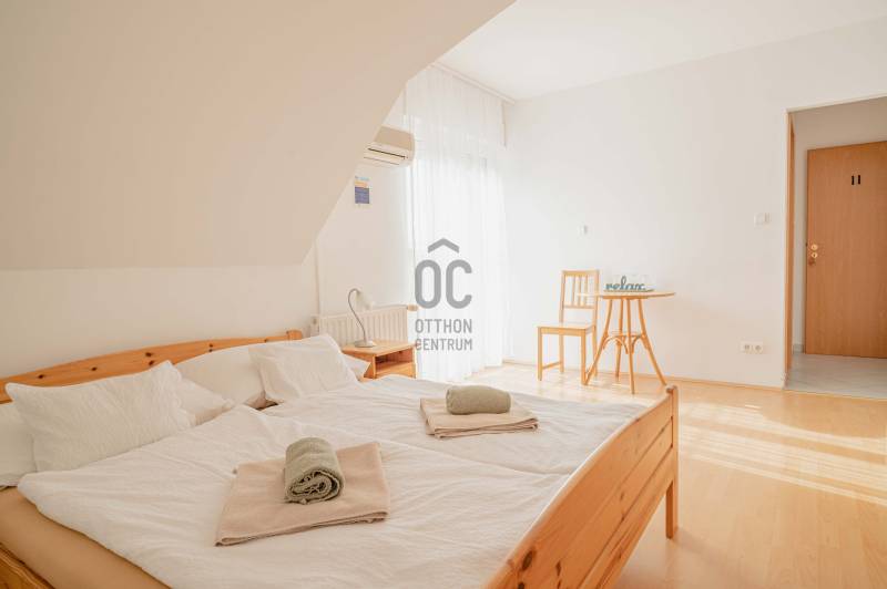 Kivételes lehetőség a Balaton egyik legkedveltebb településén!Eladásra kínálunk két egymás mellett elhelyezkedő, teljesen működő és bejáratott vendégházat, amelyek jelenleg is sikeresen üzemelnek, és azonnal tovább működtethetők.A kiváló lokáció, a nagyszámú különálló apartman, a prémium felszereltség és az energiahatékony megoldások kiemelkedő hozampotenciált és hosszú távú értékállóságot biztosítanak.Lokáció – Balaton közelsége és kiváló turisztikai környezet:• Mindkét strand kb. 10 perc kényelmes sétával elérhető• Nyugodt, üdülőövezet, kiváló megközelíthetőséggel• Magas turisztikai kereslet, kiváló kiadhatóság egész szezonban• Közelben éttermek, kerékpárutak, bevásárlási lehetőségek• A közeli Keszthely teljes infrastruktúrát biztosítGyenesdiás a Balaton nyugati partjának egyik legértékesebb és legkeresettebb települése, stabil befektetési környezettel.Az ingatlanegyüttes összesített jellemzői:✔ Két különálló, szomszédos épület✔ Jelenleg is működő vendégházak✔ Összesen 15+ különálló apartman / lakrész✔ Jelentős vendégfogadási kapacitás✔ Bejáratott, azonnal tovább üzemeltethető rendszer✔ Ideális panziónak, apartmanháznak vagy boutique vendégháznak1. Vendégház – apartmanház (2001)Elrendezés: szuterén + földszint + emeletFőbb jellemzők:• 8 különálló apartman saját fürdőszobával és erkéllyel• Reggeliztető helyiség, felszerelt konyhával• Infra szauna• Iroda, tárolók, mosókonyha• Elektromos kapus garázs• Központi gázfűtés + padlófűtés• Hűtő-fűtő klíma minden helyiségben• KamerarendszerKültér:• Automata öntözőrendszer• Fedett kerti kiülő• Épített grillező• Játszótér• 6 autó részére parkoló• Elektromos kapuk2. Prémium vendégház / családi ház (felújítás: 2022)Főbb jellemzők:• 3 különálló, teljes értékű apartman az emeleten• Földszinten tágas lakótér további hasznosítási lehetőséggel• Napelemes rendszer szaldós elszámolással• Központi gázfűtés + padlófűtés• Hűtő-fűtő klíma minden helyiségben• Elektromos kapus garázs• KamerarendszerKültér:• 6 × 10 m csempézett úszómedence automata rendszerrel• Automata öntözőrendszer• Fedett kerti kiülő• Játszótér• Parkoló több autó számára• Elektromos kapukBefektetési előnyök:✔ Azonnal tovább működtethető, kész vendégházak✔ Jelentős, azonnali bevételi potenciál✔ Nagy kapacitás – több apartman, magas kihasználtság✔ Balaton közeli prémium lokáció✔ Energiahatékony működés (napelem, modern gépészet)✔ Teljes felszereltség – nincs szükség további beruházásra✔ Ritka lehetőség: két szomszédos vendégház egyben eladóIdeális választás:• Befektetőknek• Vendégház / panzió üzemeltetőknek• Apartmanház fejlesztésére• Többgenerációs hasznosításra• Balaton közeli prémium befektetést keresőknekÖsszegzés:Ez a két szomszédos ingatlan egyedülálló lehetőséget kínál a Balaton egyik legkeresettebb térségében. A jelenleg is működő vendégházak, a nagyszámú apartman, a prémium felszereltség és az energiahatékony működés stabil, hosszú távú és kiemelkedő hozamot biztosítanak.Az ingatlanegyüttes ritka lehetőség a piacon, különösen azok számára, akik azonnal működő, magas színvonalú turisztikai befektetést keresnek.Érdeklődjön bizalommal, és tekintse meg személyesen ezt a kivételes gyenesdiási befektetési lehetőséget!